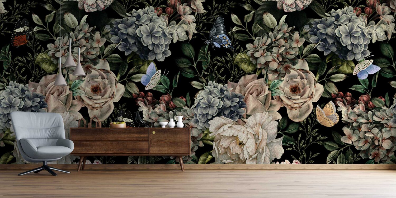 Koyu Renk Kelebekler ve Güller Duvar Kağıdı Duvar Kağıdı Ürün Bilgisi