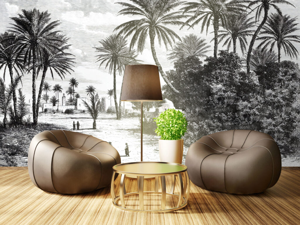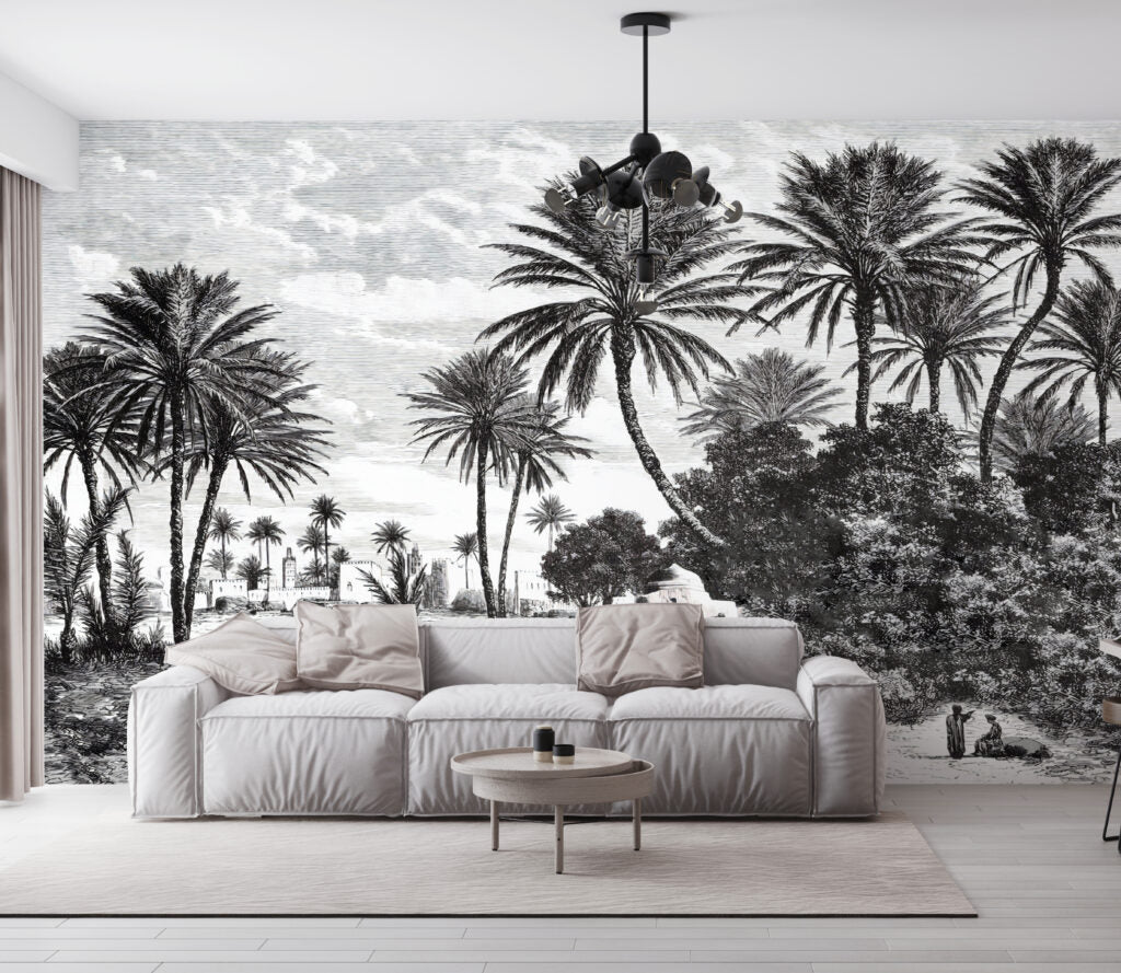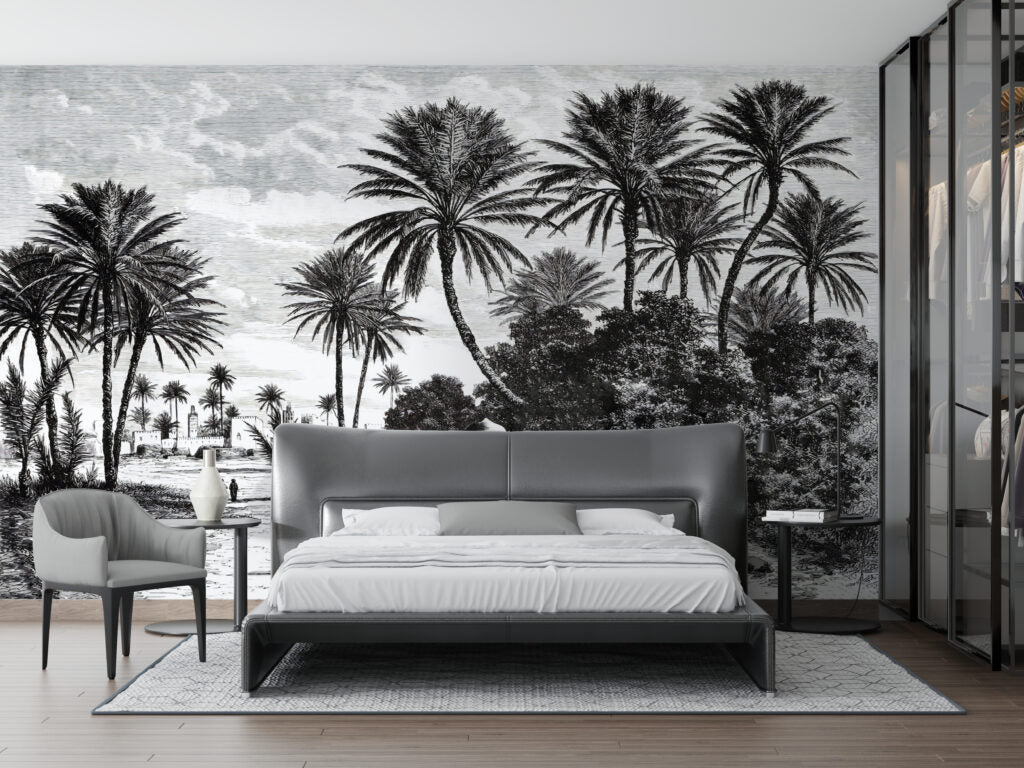 Koyu Renkli Sahil ve Palmiye Ağaç Desenli 3D Duvar Kağıdı üretimi, uygulanmasını isteyeceğiniz boyut ve konumuna uygun olarak talepleriniz doğrultusunda size özel imal edilir.