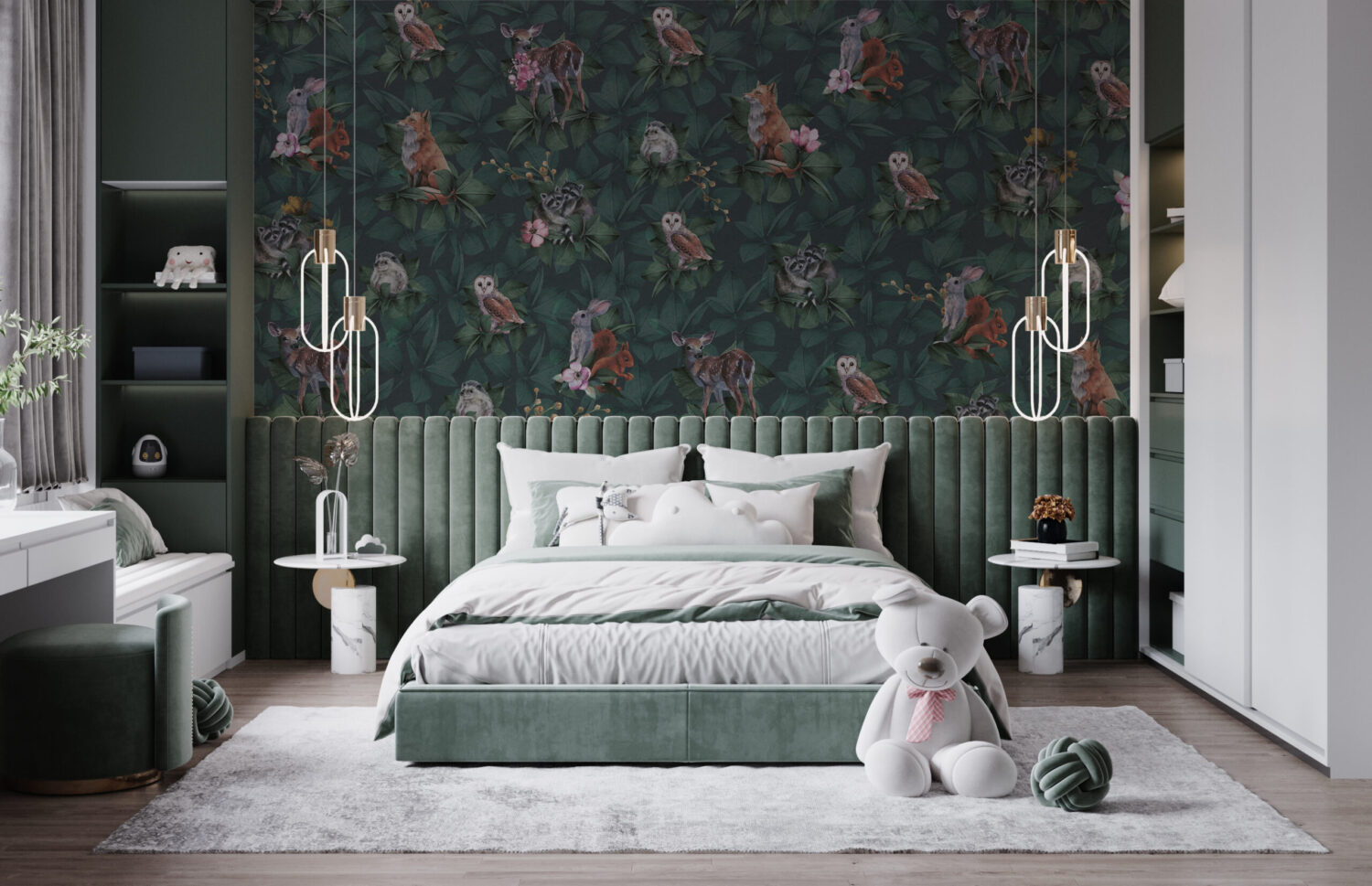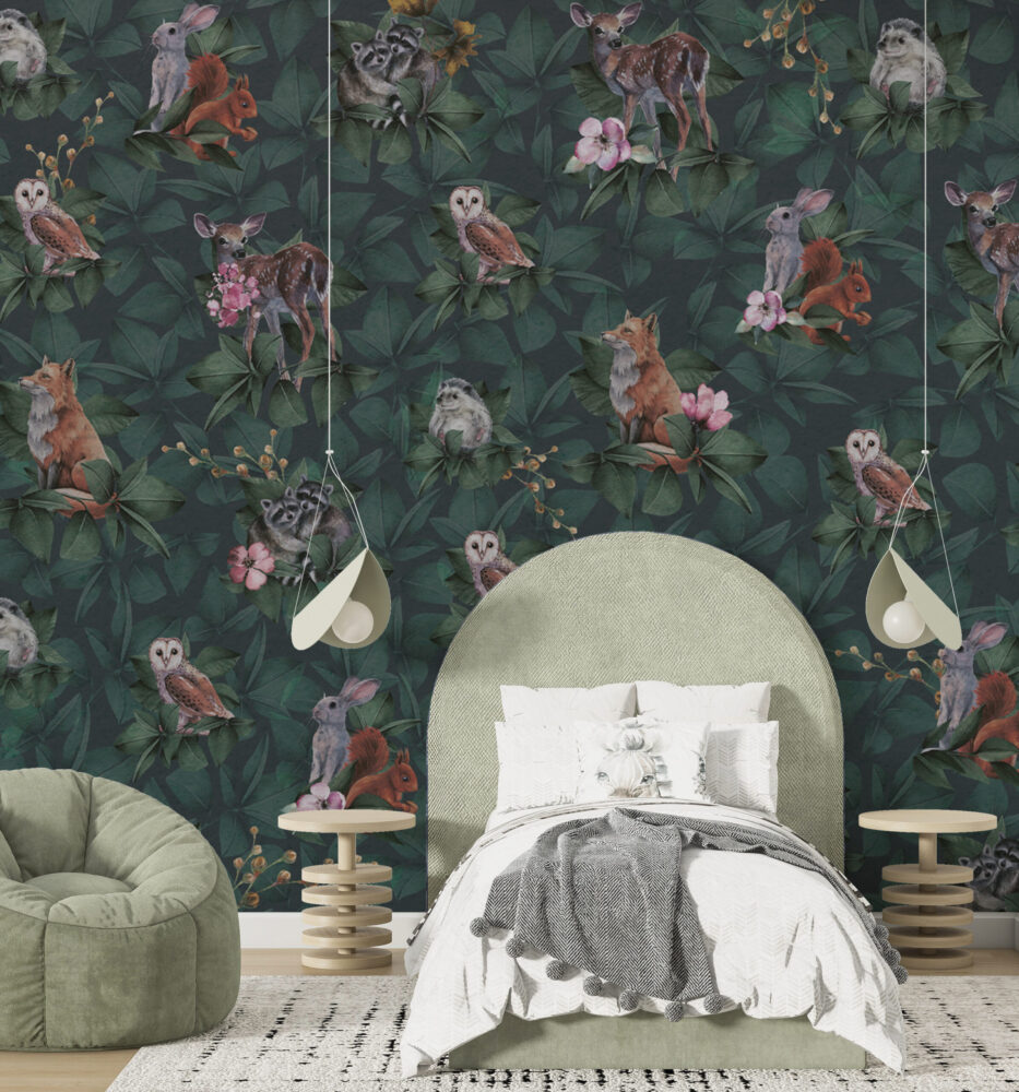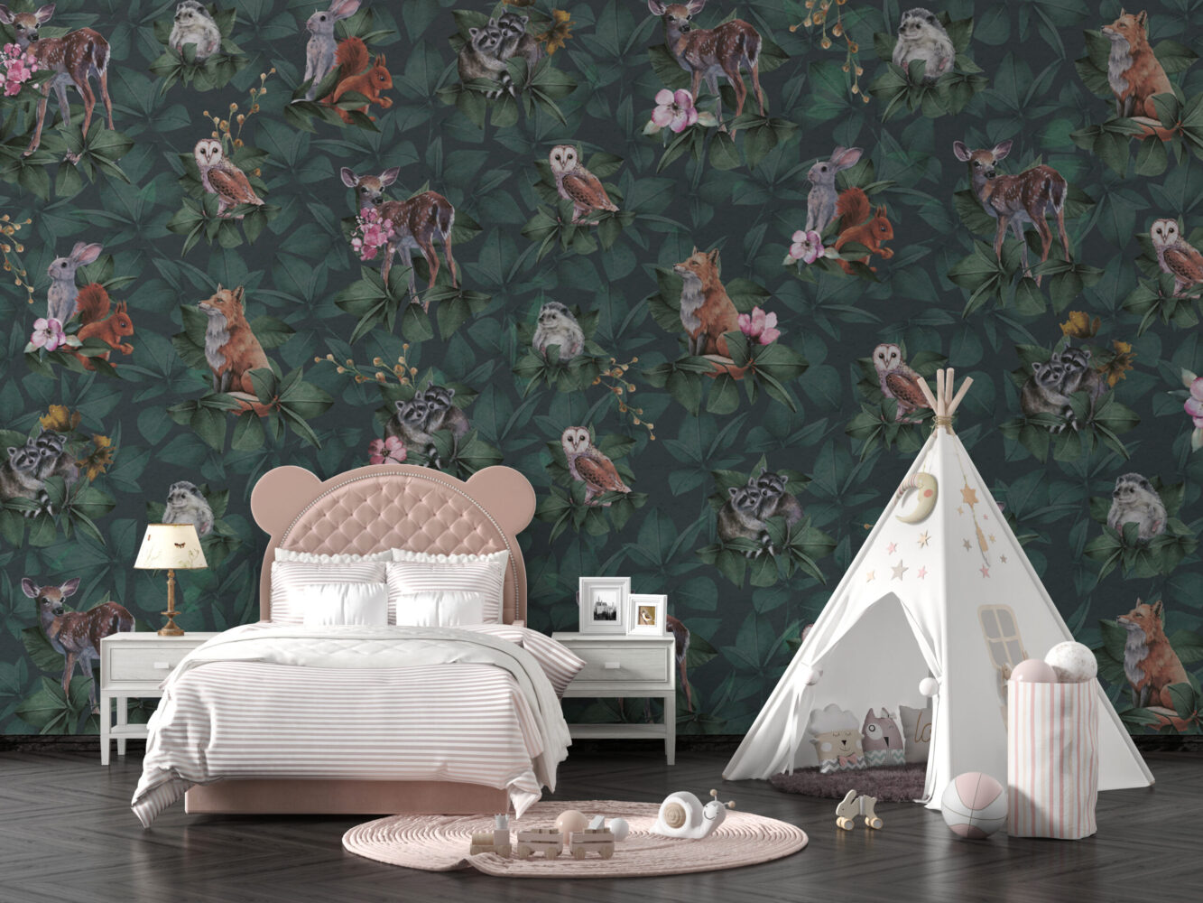 Koyu Tonlar'da Hayvan Ve Yaprak Desenli 3D Duvar Kağıdı üretimi, uygulanmasını isteyeceğiniz boyut ve konumuna uygun olarak talepleriniz doğrultusunda size özel imal edilir.