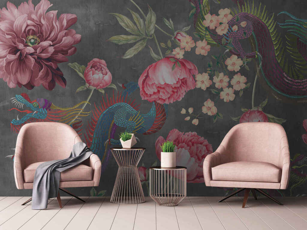 Koyu Zemin Üzerine Kırmızı Çiçekler 3D Duvar Kağıdı Duvar Kağıdı Ürün Bilgisi