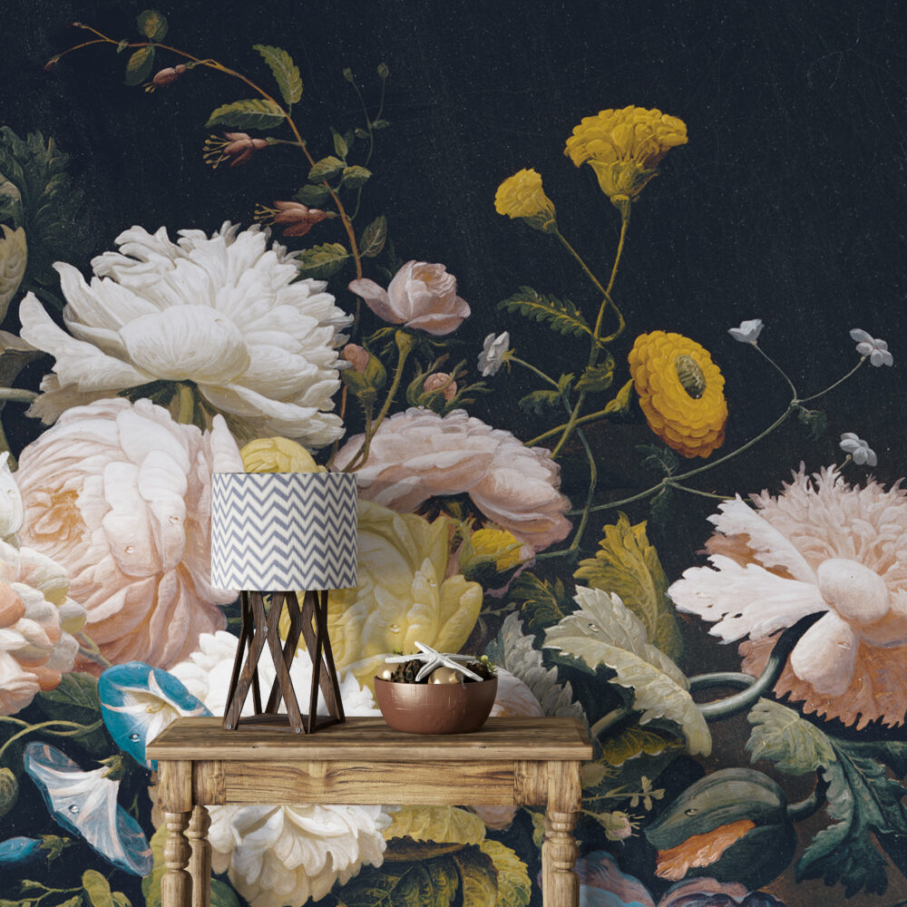 Koyu Zeminli Eskitmeli Çiçekler Duvar Kağıdı Duvar Kağıdı Ürün Bilgisi