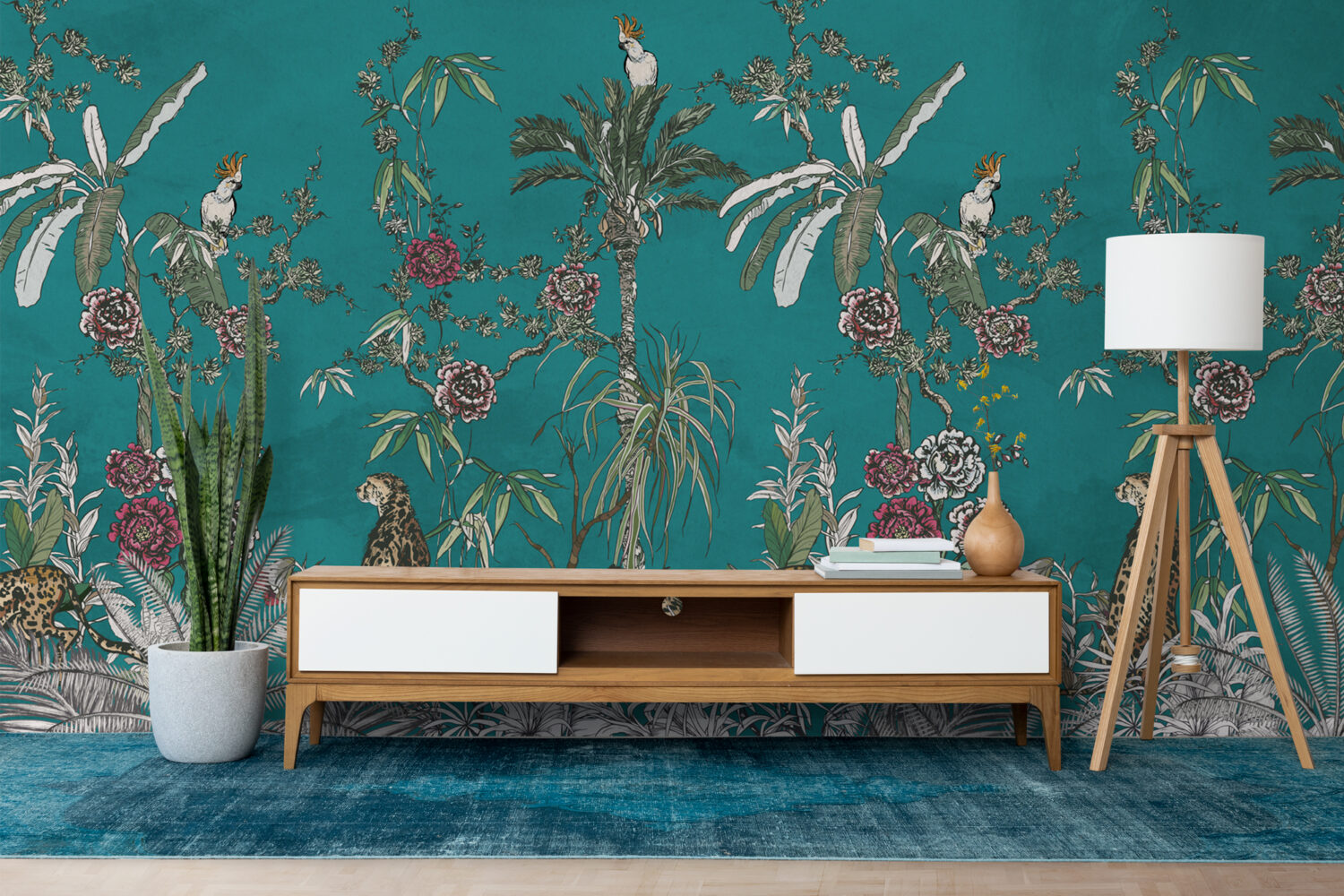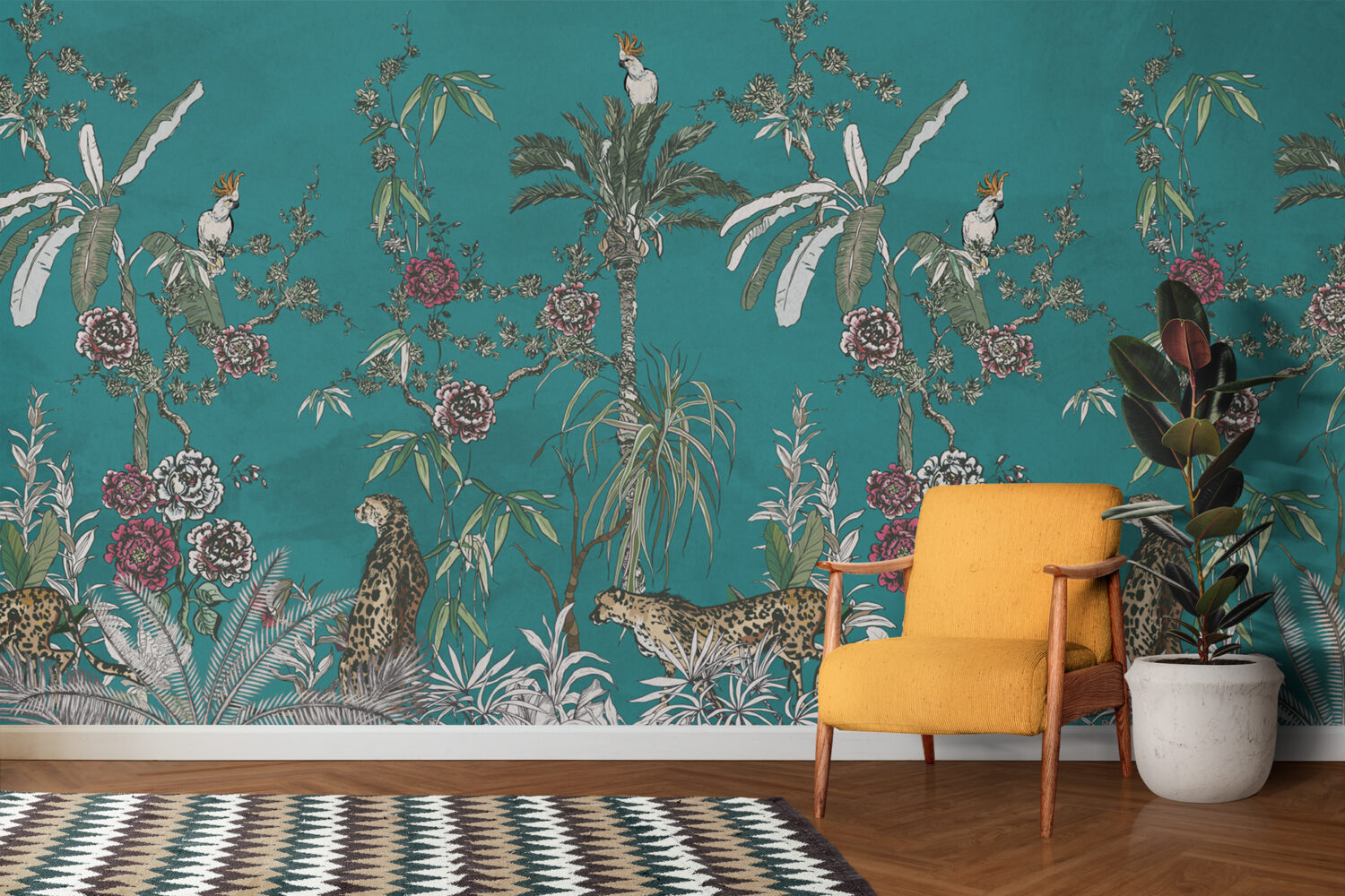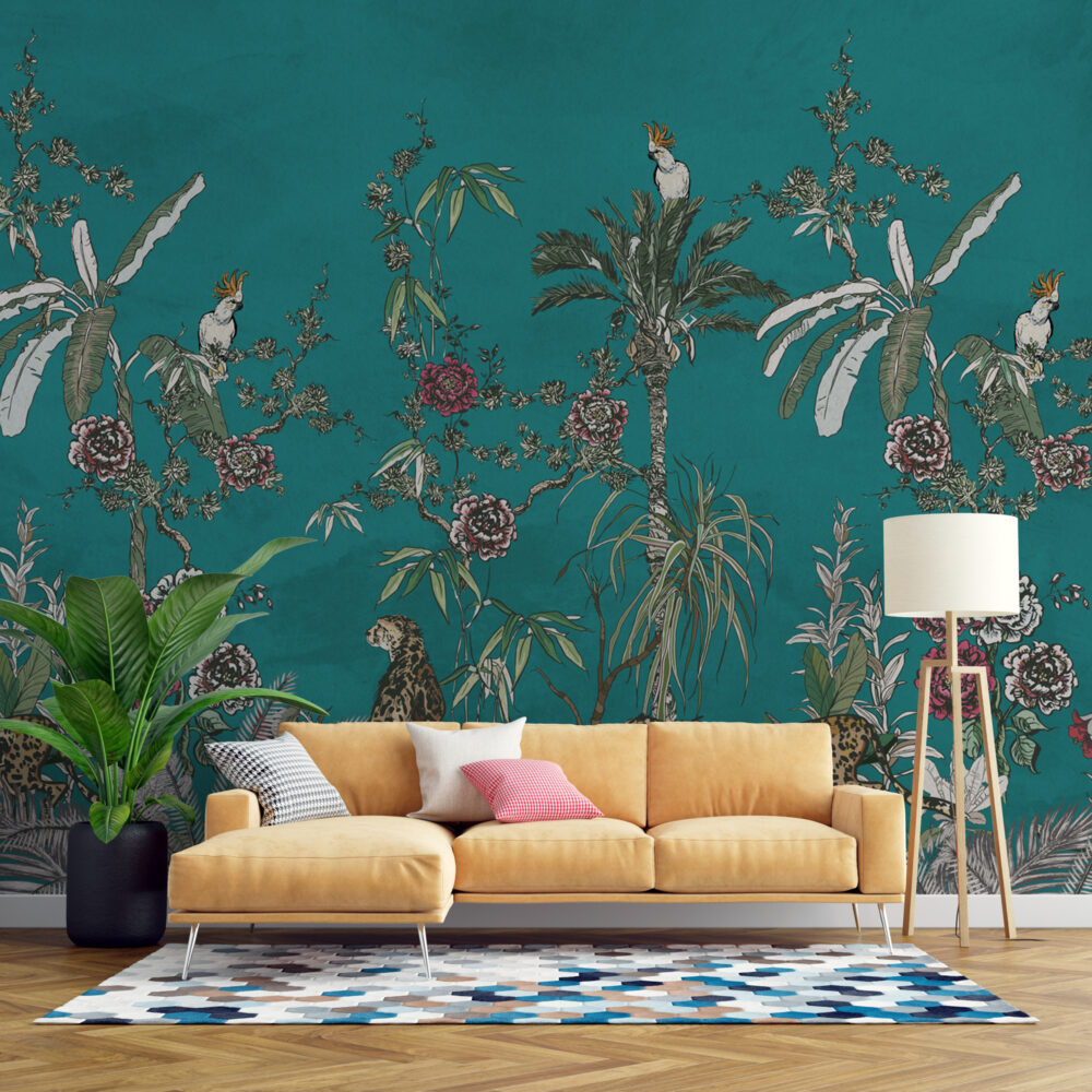 Koyu Zeminli Tropikal Ağaçlar Ve Hayvanlar 3D Duvar Kağıdı üretimi, uygulanmasını isteyeceğiniz boyut ve konumuna uygun olarak talepleriniz doğrultusunda size özel imal edilir.