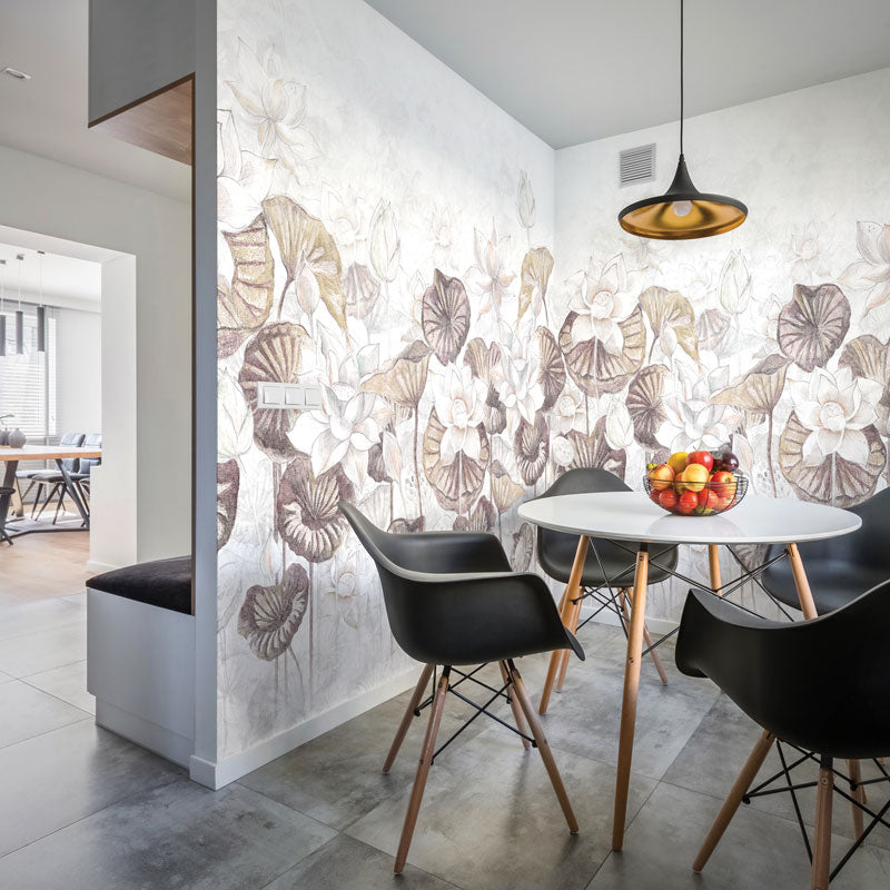 Krem Renkli Çiçek Desenli 3D Duvar Kağıdı