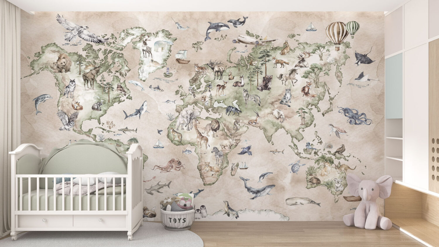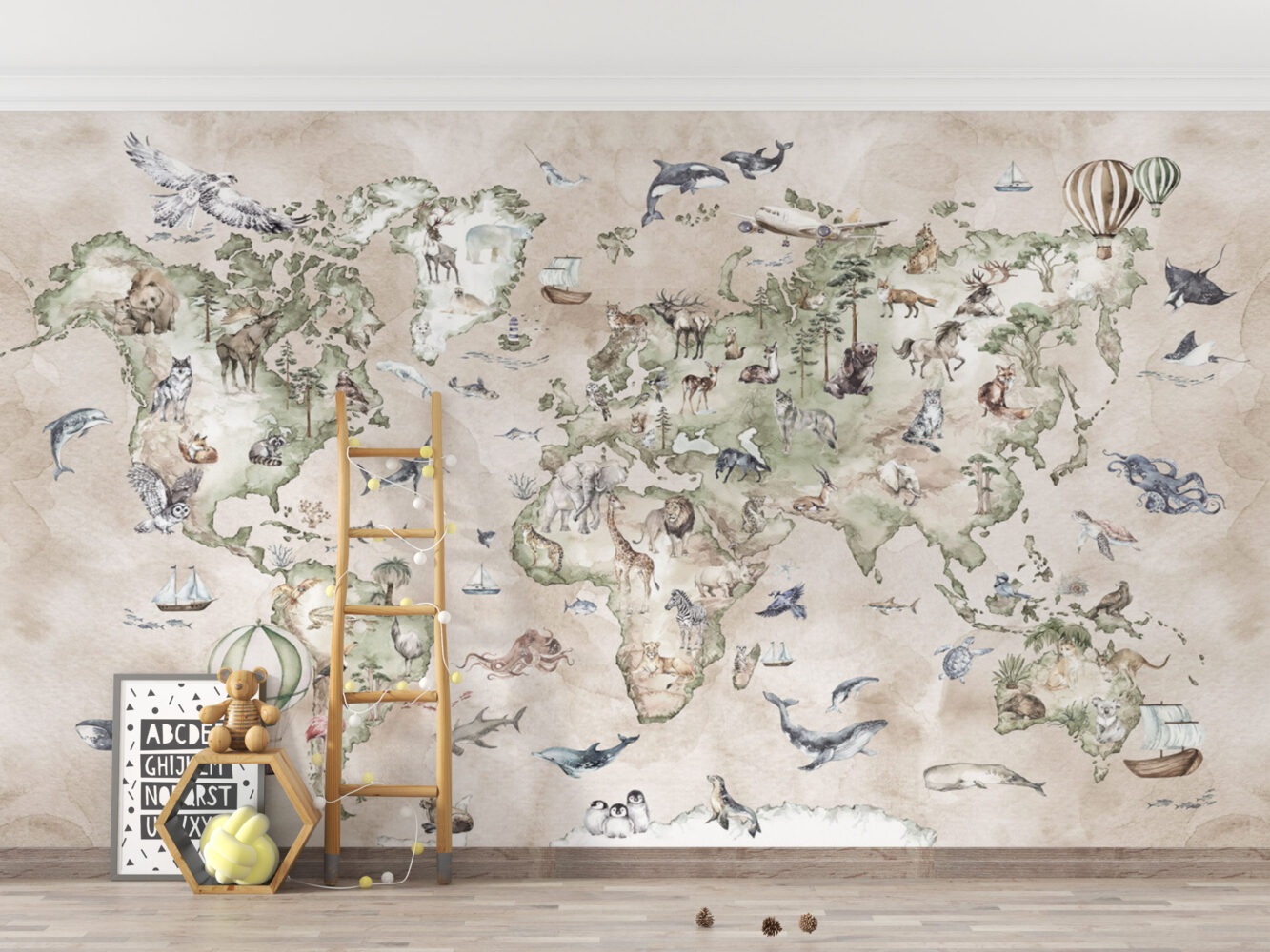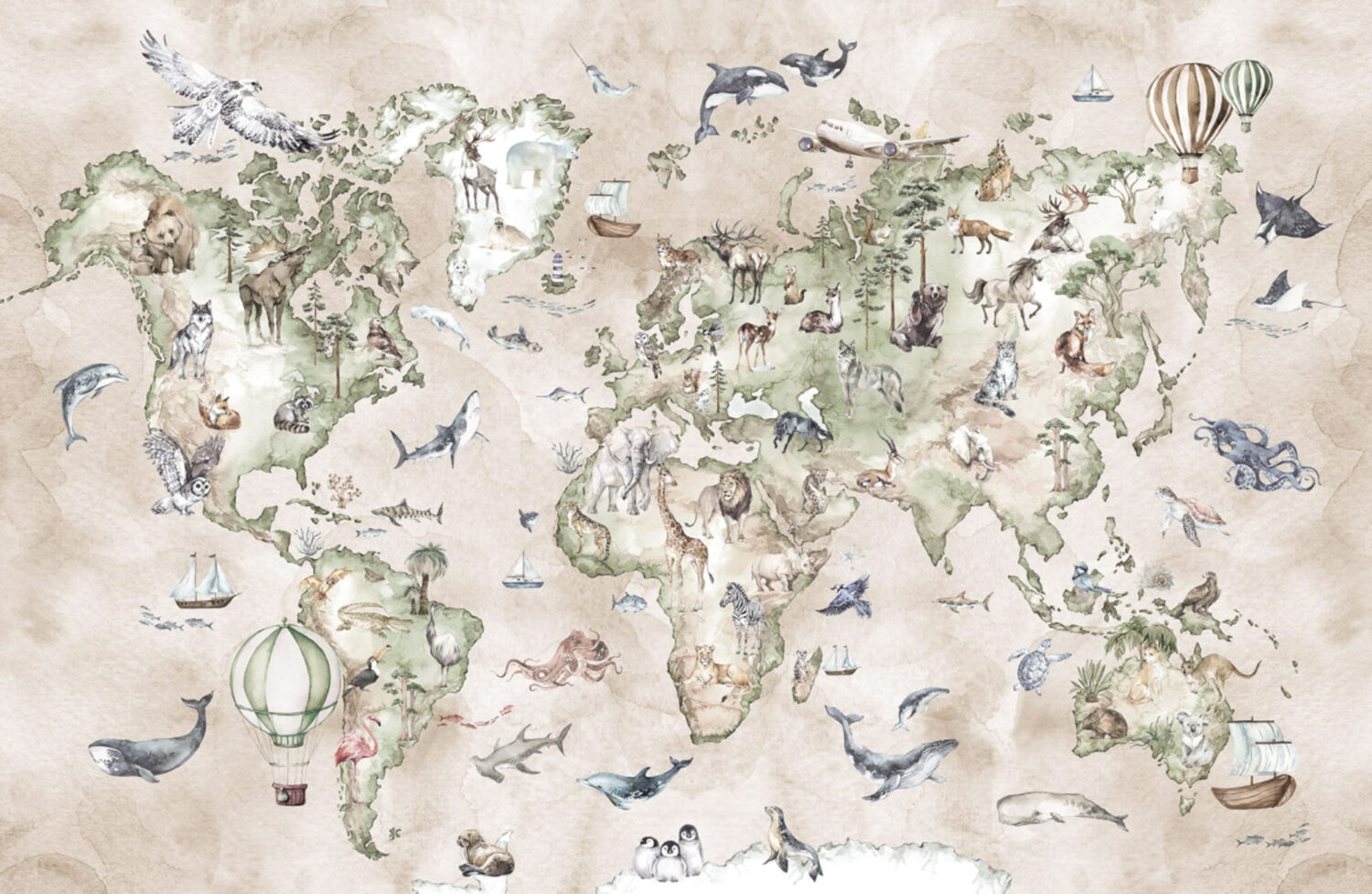 Krem Tonların'da Hayvanlı Dünya Harita 3D Duvar Kağıdı Duvar Kağıdı Ürün Bilgisi