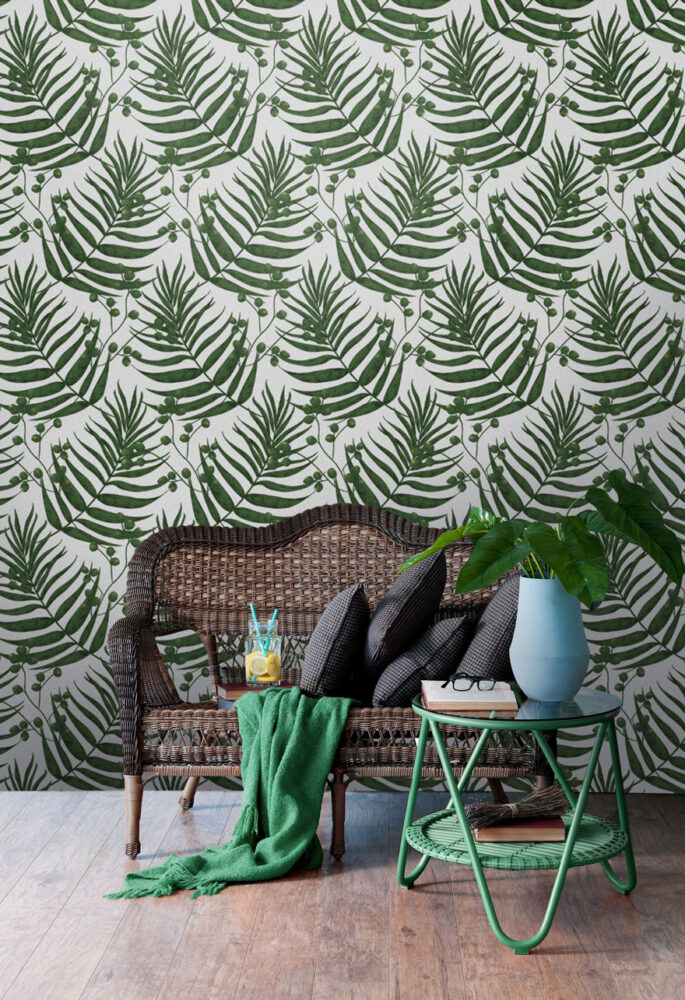 Küçük Tropikal Yapraklar Duvar Kağıdı üretimi, uygulanmasını isteyeceğiniz boyut ve konumuna uygun olarak talepleriniz doğrultusunda size özel imal edilir.
