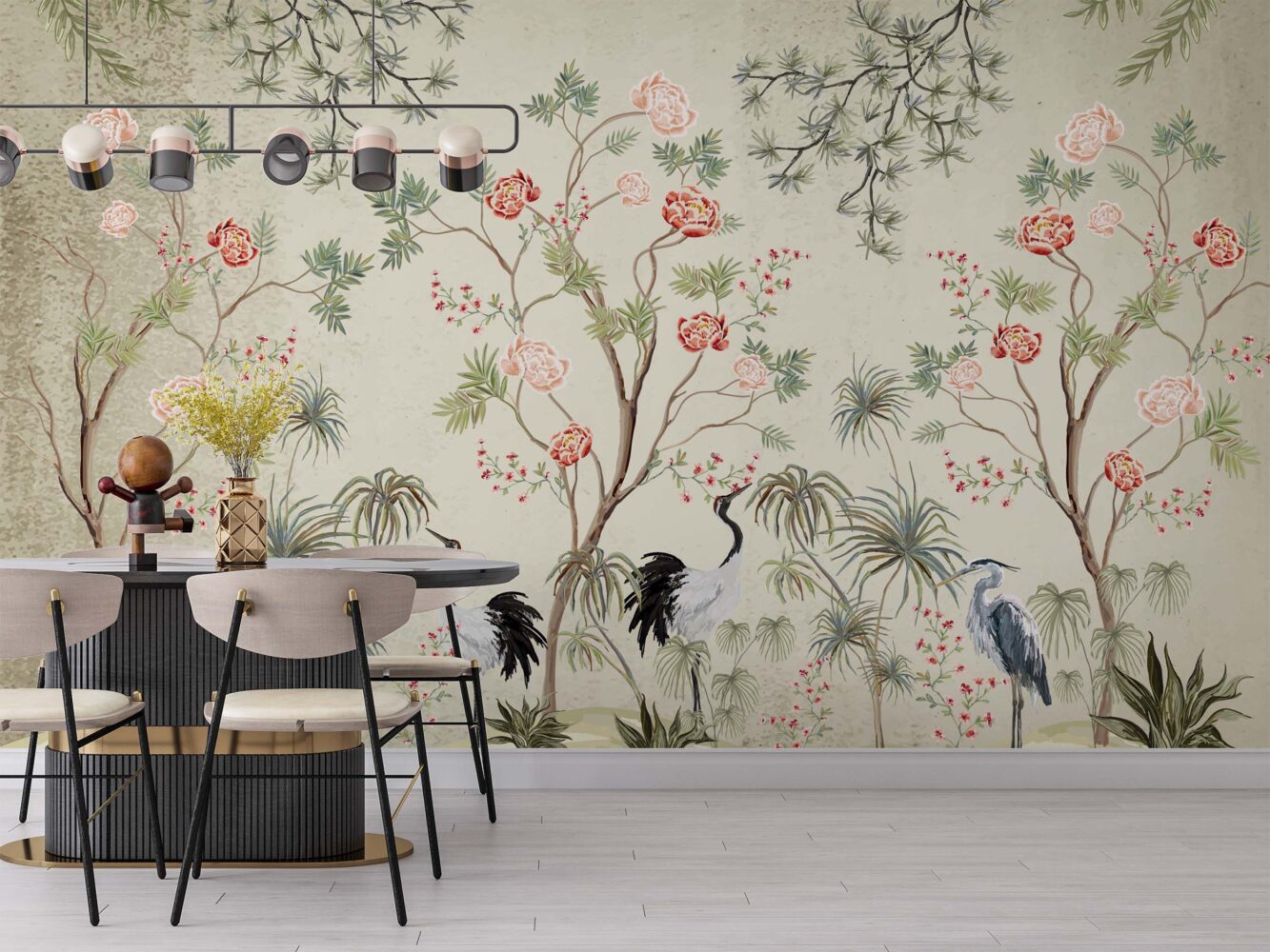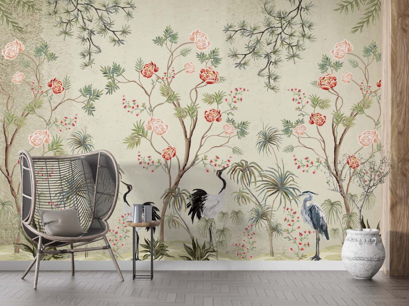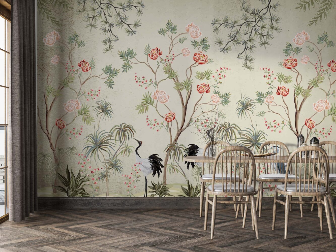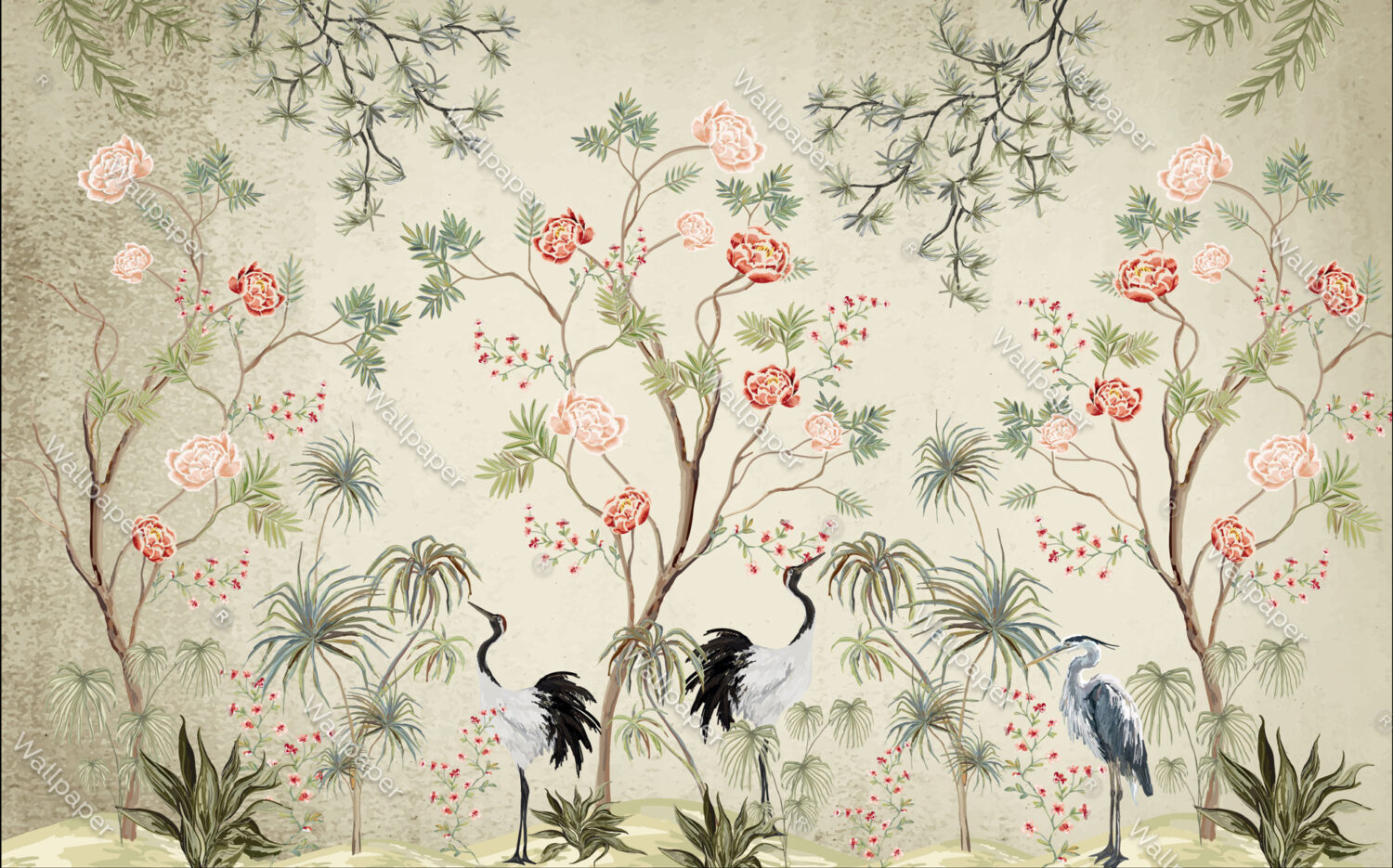 Leylekler ve Japon Gülleri Bej Zemin 3D Duvar Kağıdı Duvar Kağıdı Ürün Bilgisi