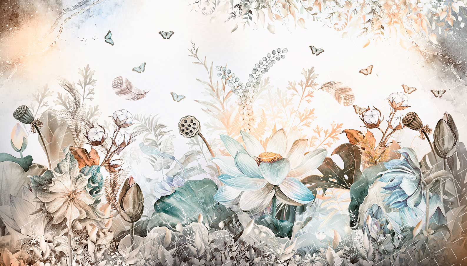 Lotus Çiçeği ve Kelebekler Duvar Kağıdı Duvar Kağıdı Ürün Bilgisi