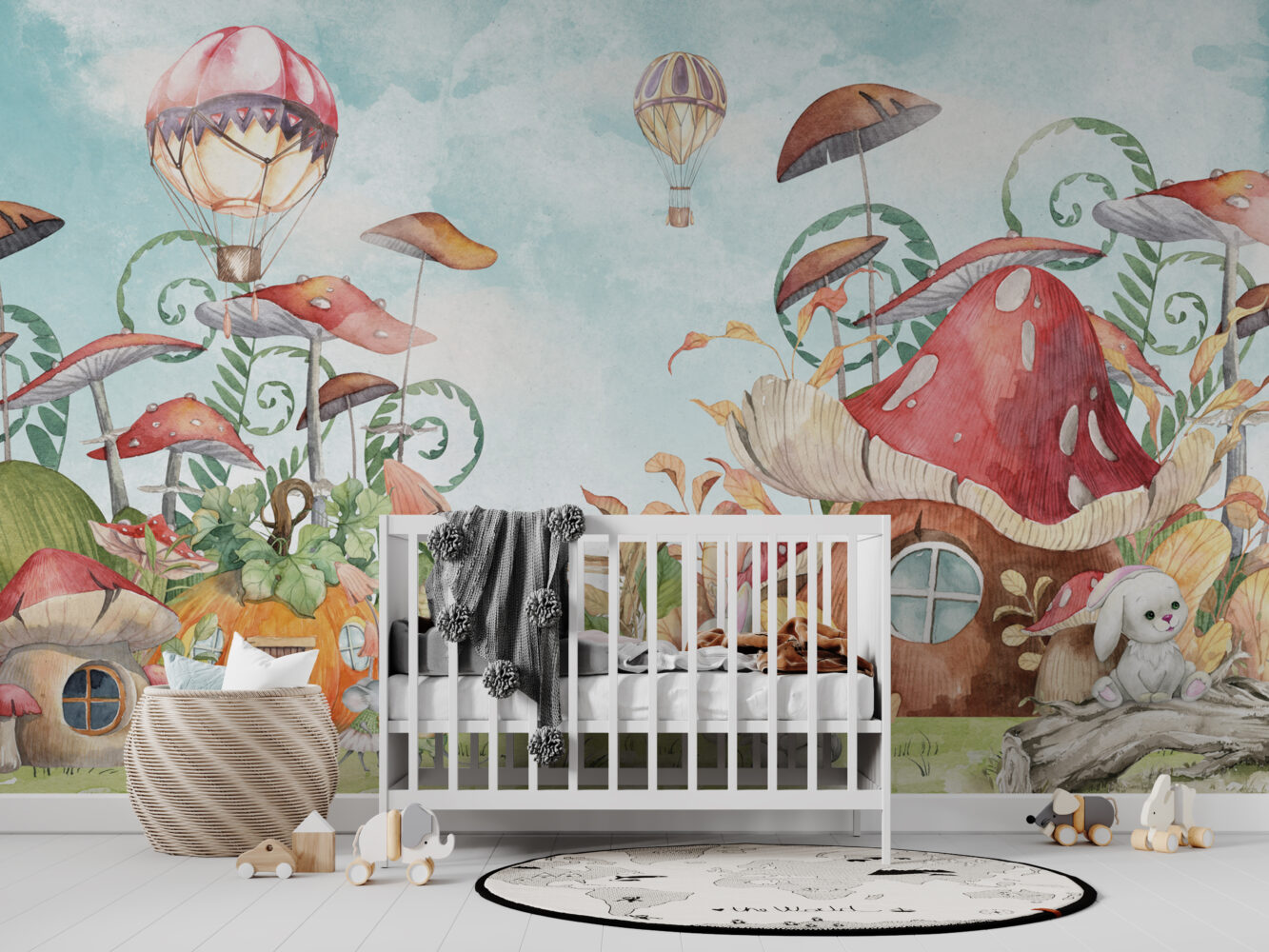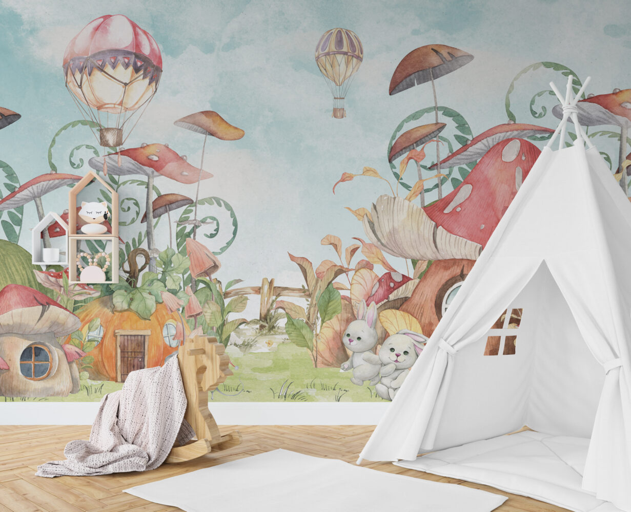 Mantar'dan Evler Ve Şirin Tavşanlar Duvar Kağıdı üretimi, uygulanmasını isteyeceğiniz boyut ve konumuna uygun olarak talepleriniz doğrultusunda size özel imal edilir.