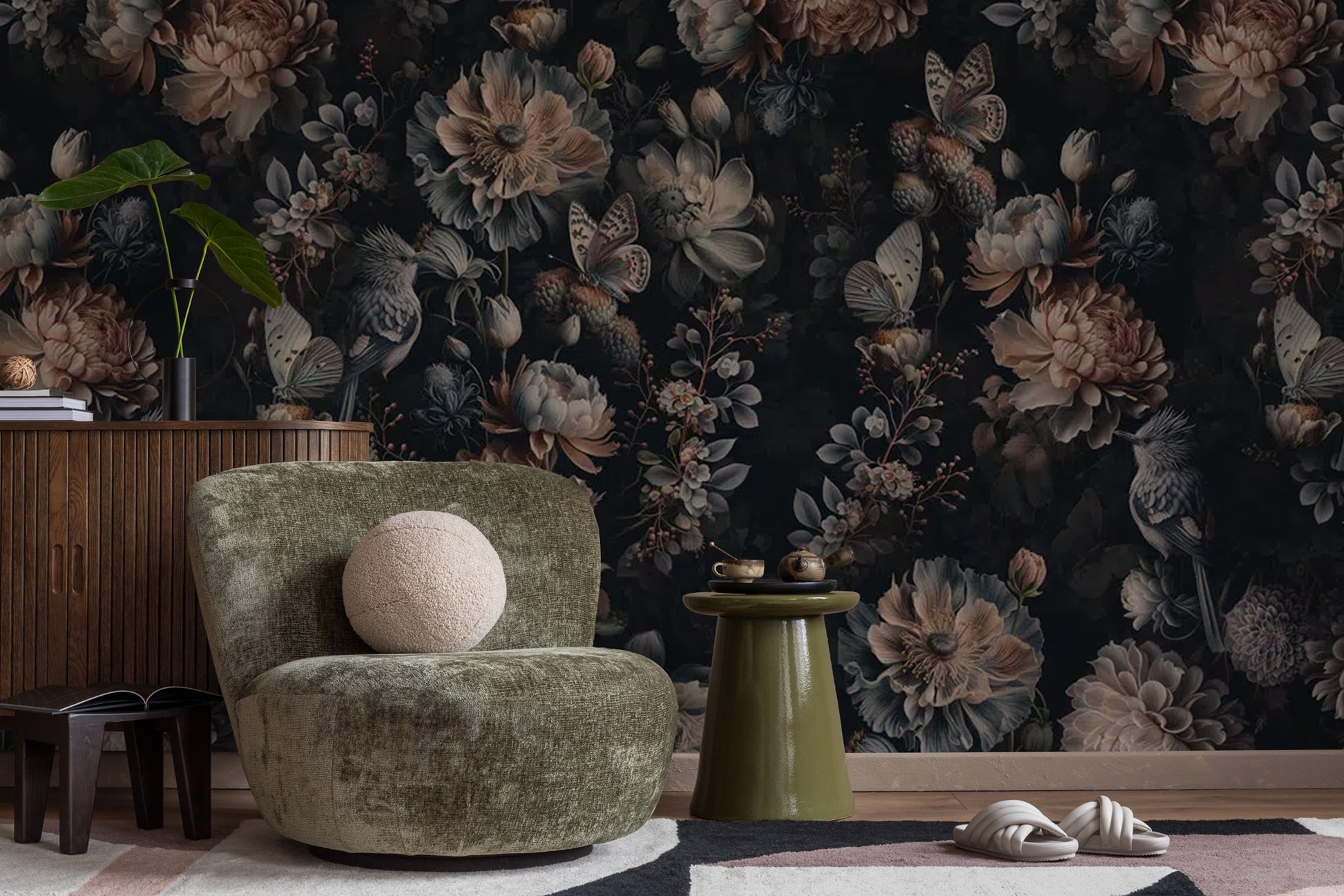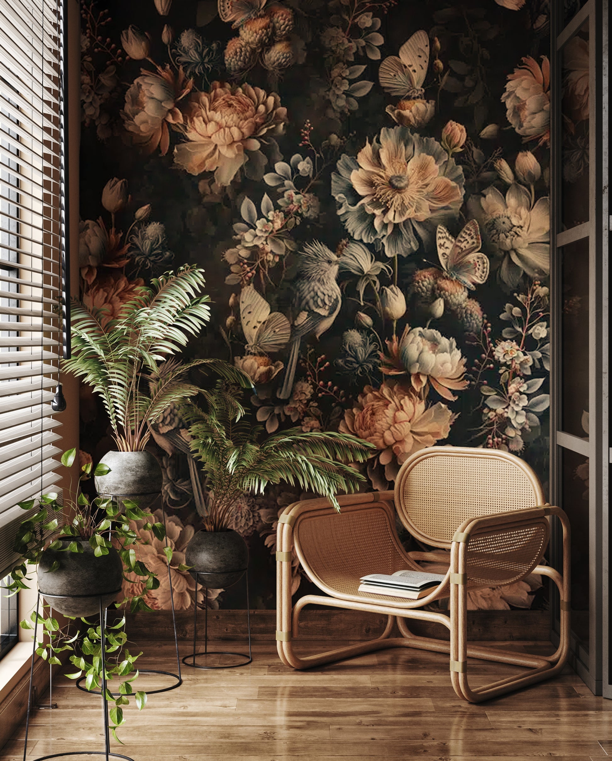 Mavi Çiçekler ve Kelebekler Duvar Kağıdı Duvar Kağıdı Ürün Bilgisi