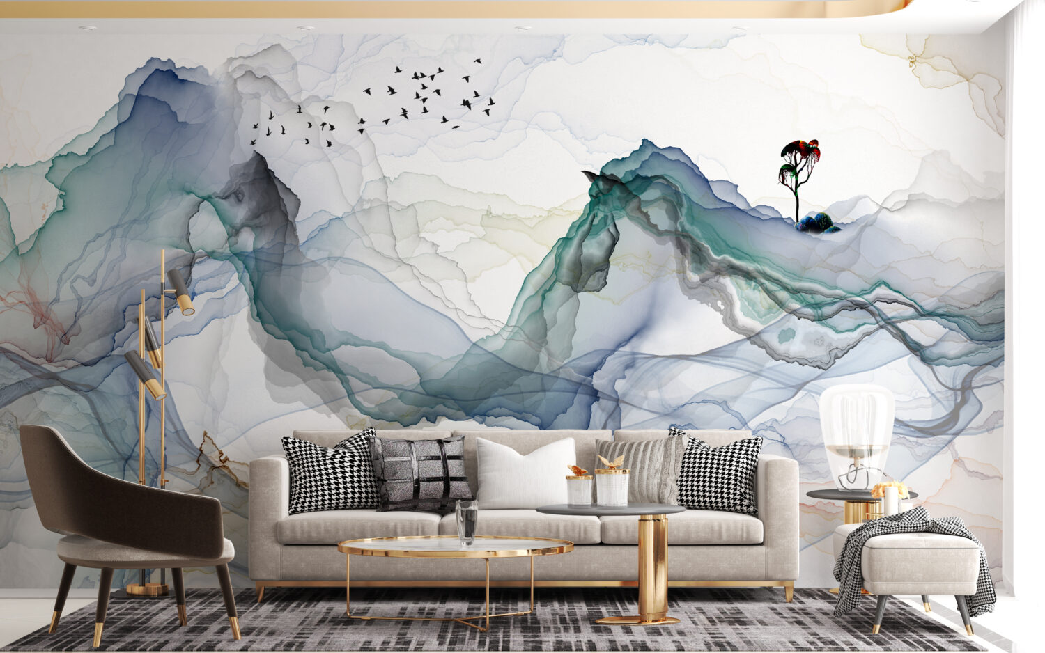 Mavi Geçişli Mermer Desenli Duvar Kağıdı Duvar Kağıdı Ürün Bilgisi