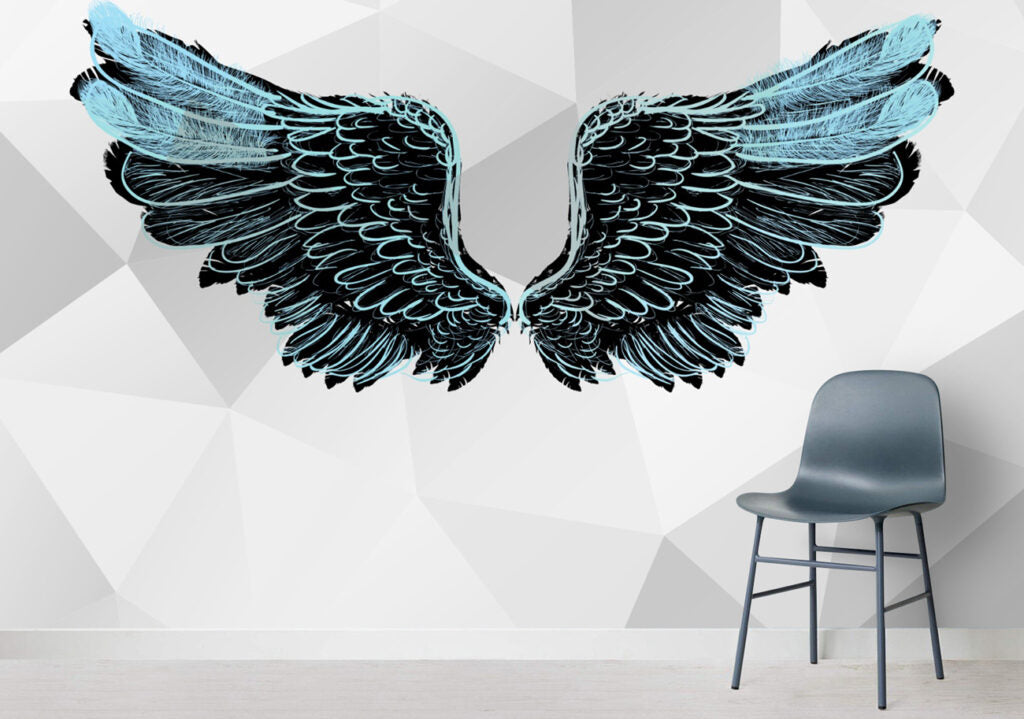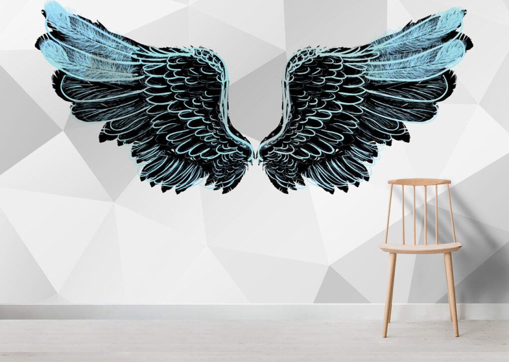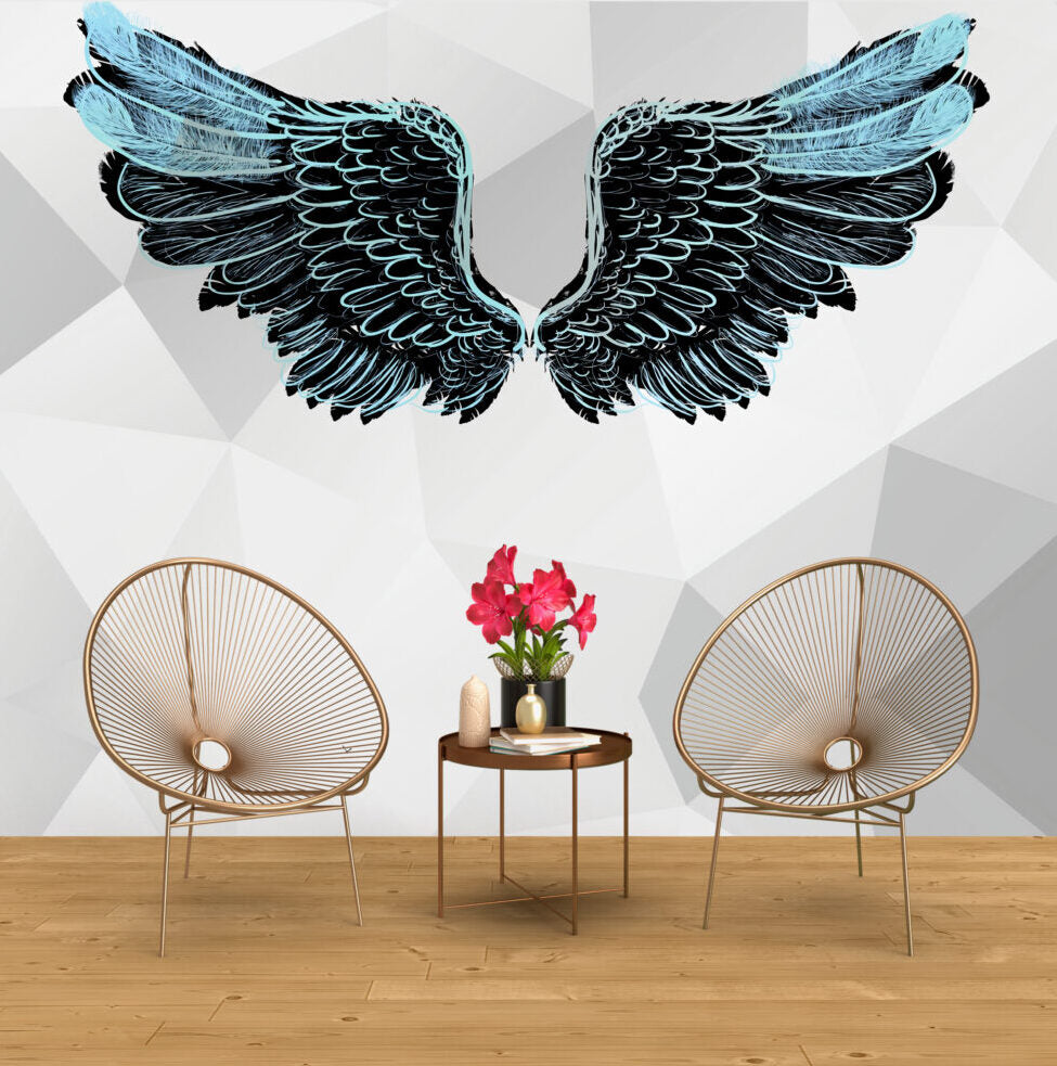 Mavi Kanat Desenli 3D Duvar Kağıdı | Duvar Kağıdı Marketi