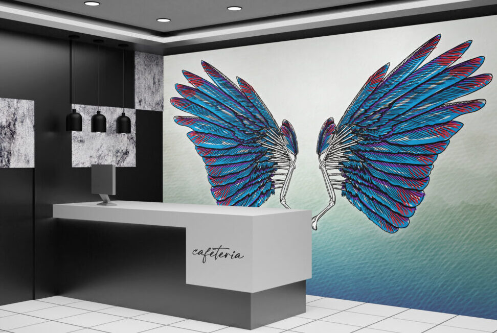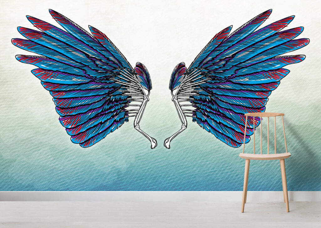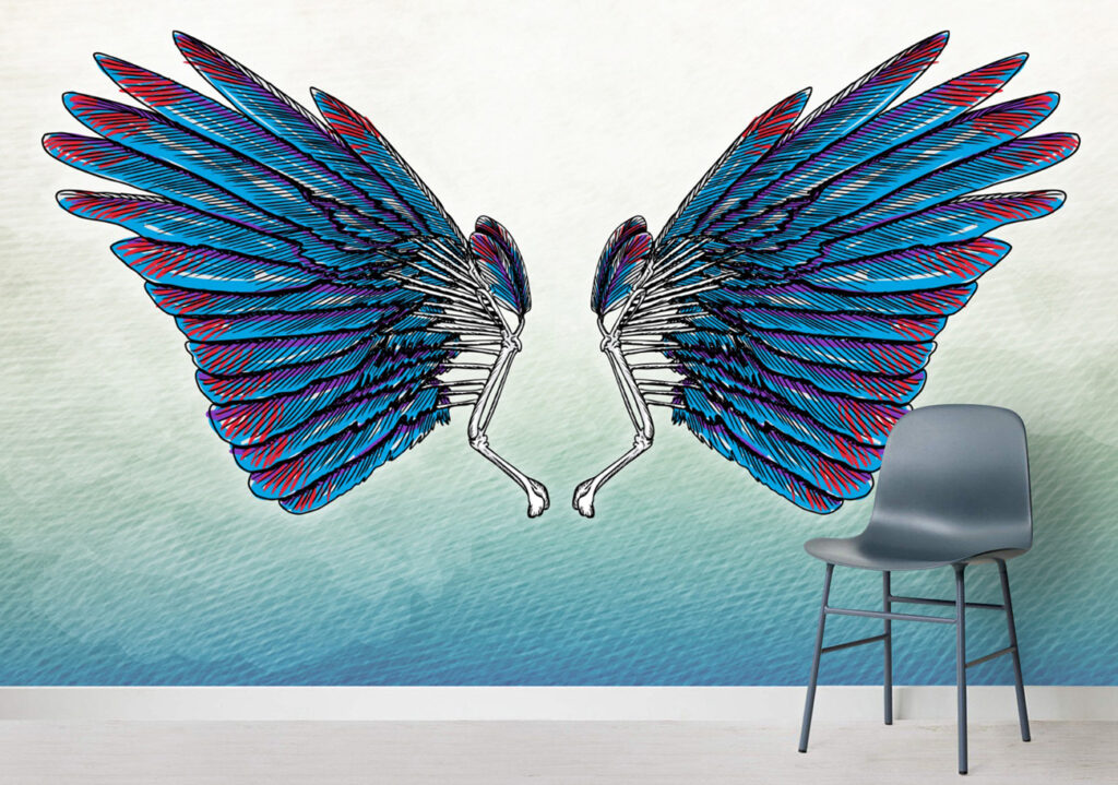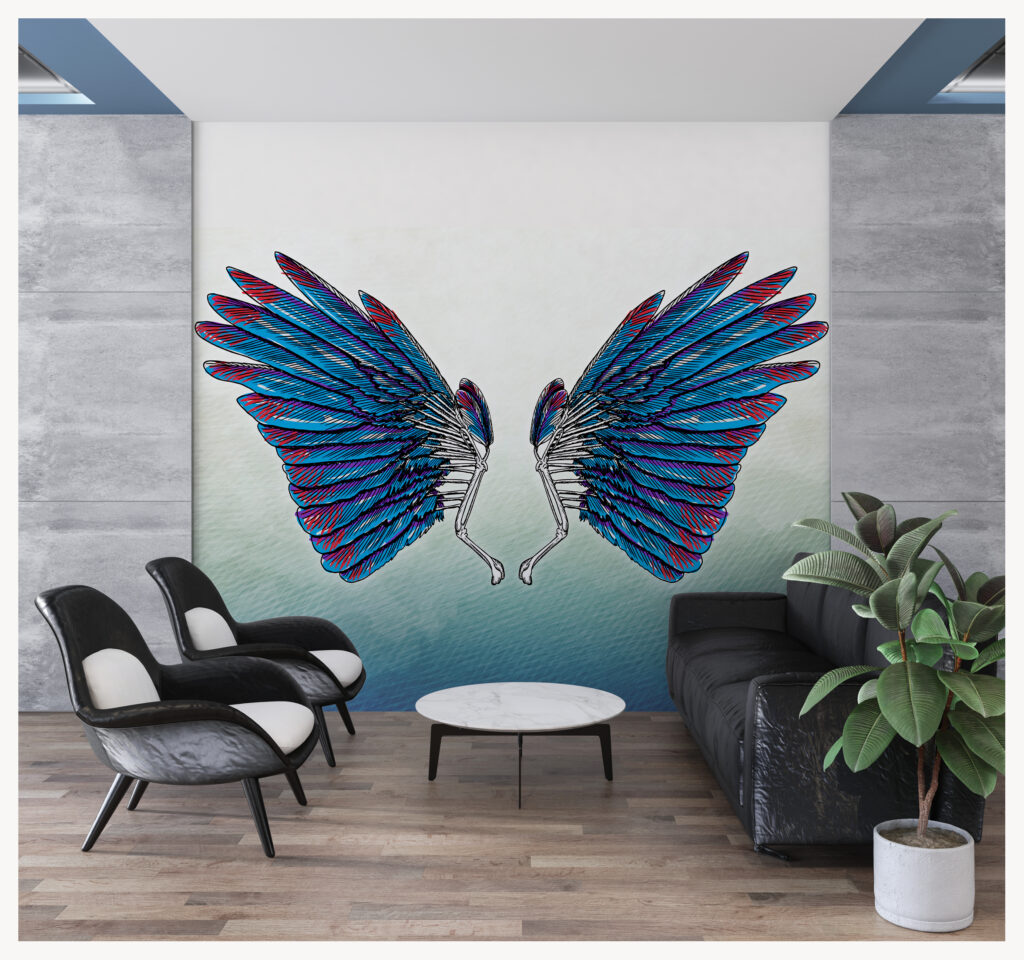 Mavi Kırmızı Kanat Desenli 3D Duvar Kağıdı | Duvar Kağıdı Marketi üretimi, uygulanmasını isteyeceğiniz boyut ve konumuna uygun olarak talepleriniz doğrultusunda size özel imal edilir.
