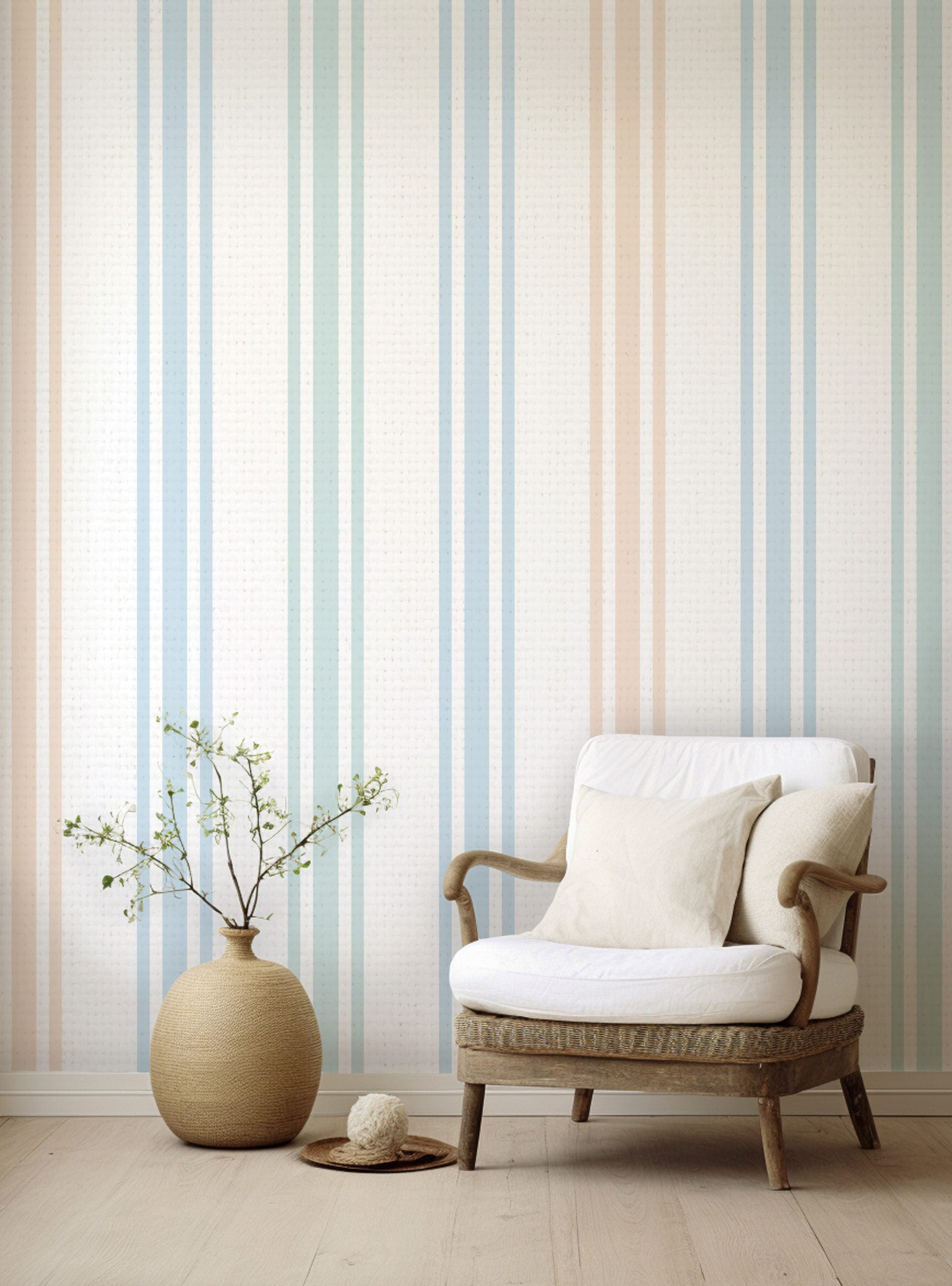 Mavi Pembe ve Yeşil Çizgili Duvar Kağıdı Duvar Kağıdı Ürün Bilgisi