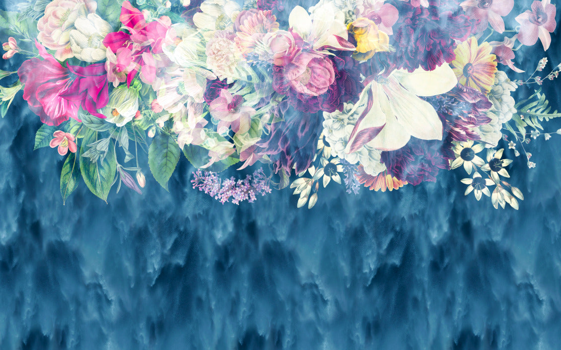 Mavi Renk Yukarıdan Sarkan Çiçekler Duvar Kağıdı üretimi, uygulanmasını isteyeceğiniz boyut ve konumuna uygun olarak talepleriniz doğrultusunda size özel imal edilir.