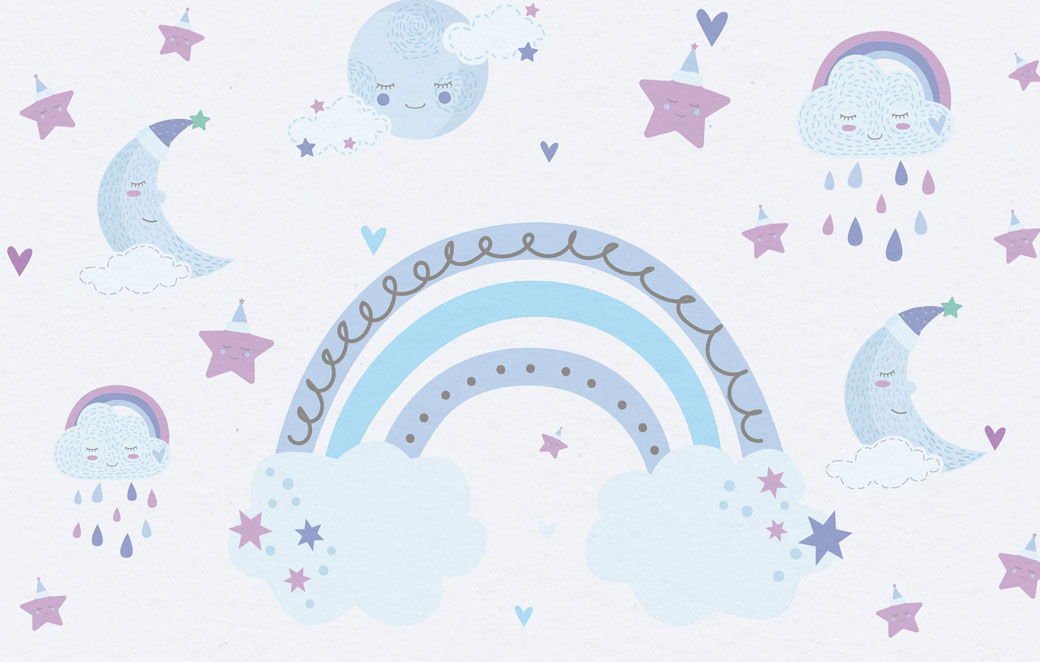 Mavi Tonlarda Ay, Bulutlar ve Gökkuşağı Duvar Kağıdı üretimi, uygulanmasını isteyeceğiniz boyut ve konumuna uygun olarak talepleriniz doğrultusunda size özel imal edilir.