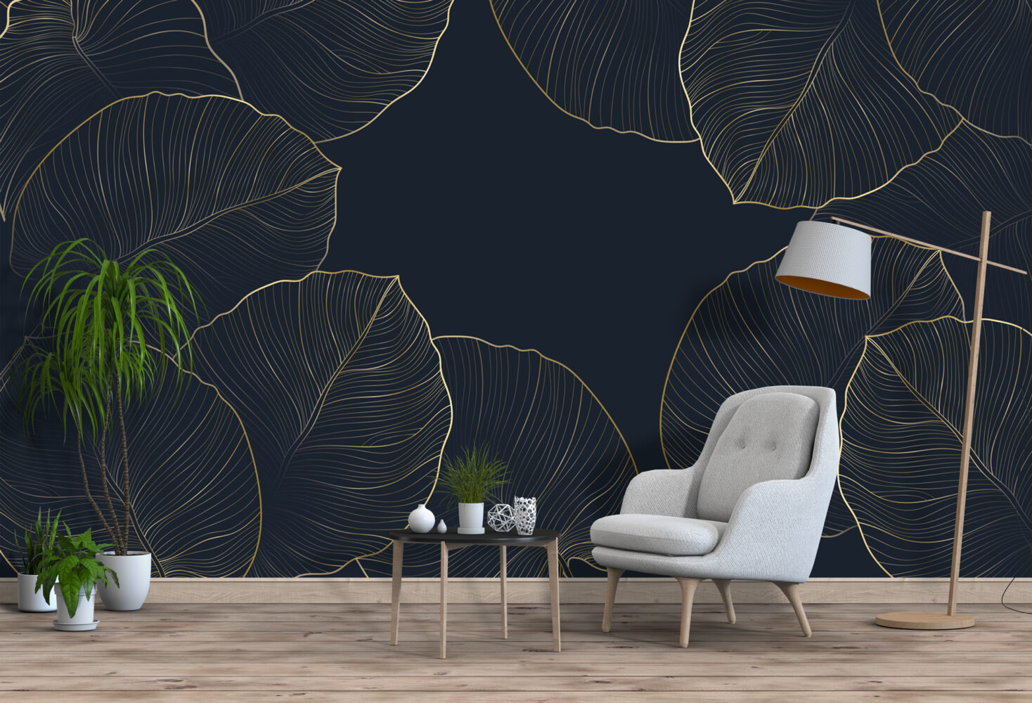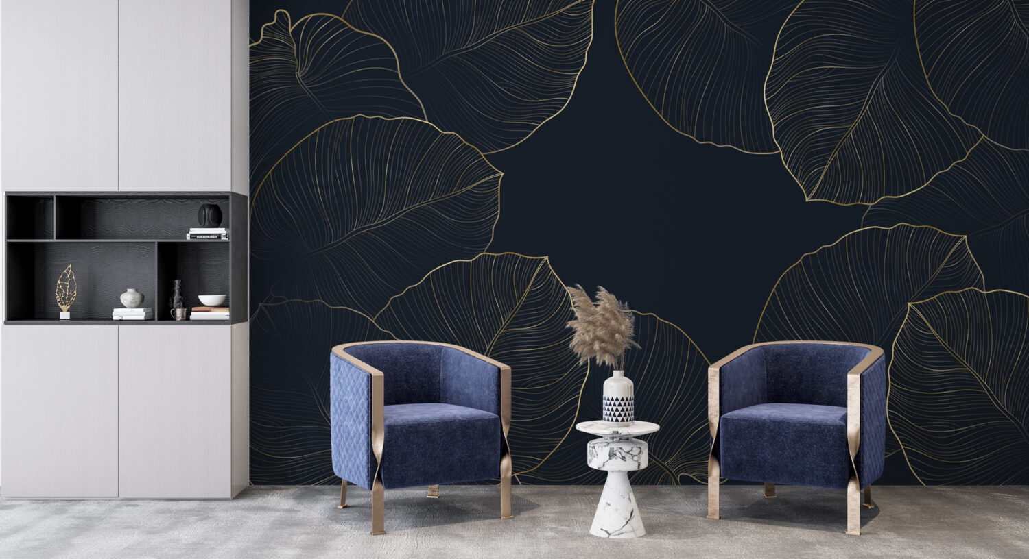 Mavi Tonlar'da Çizgisel Çicek Yaprakları Duvar Kağıdı Duvar Kağıdı Ürün Bilgisi