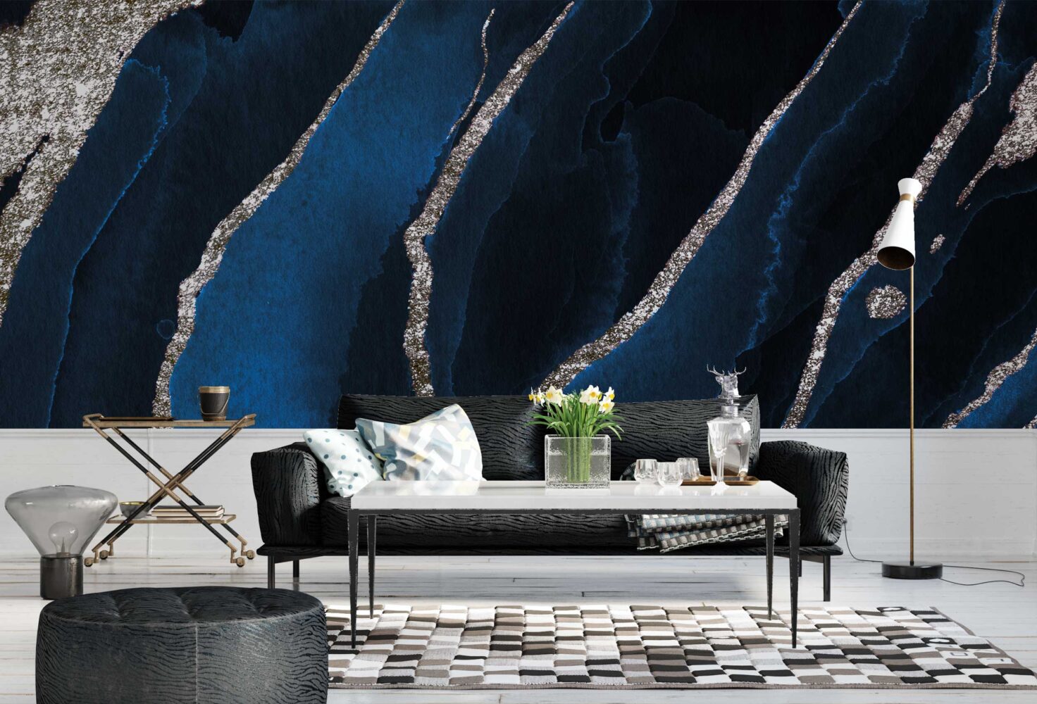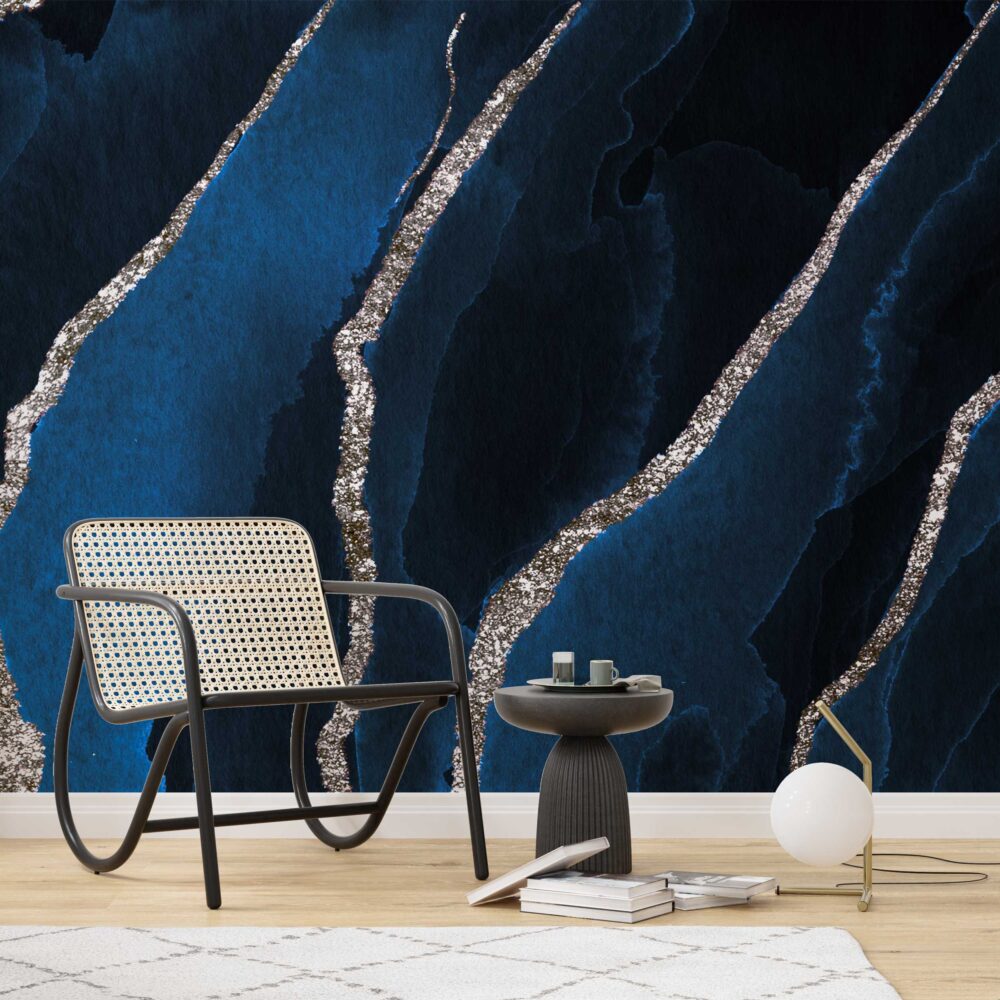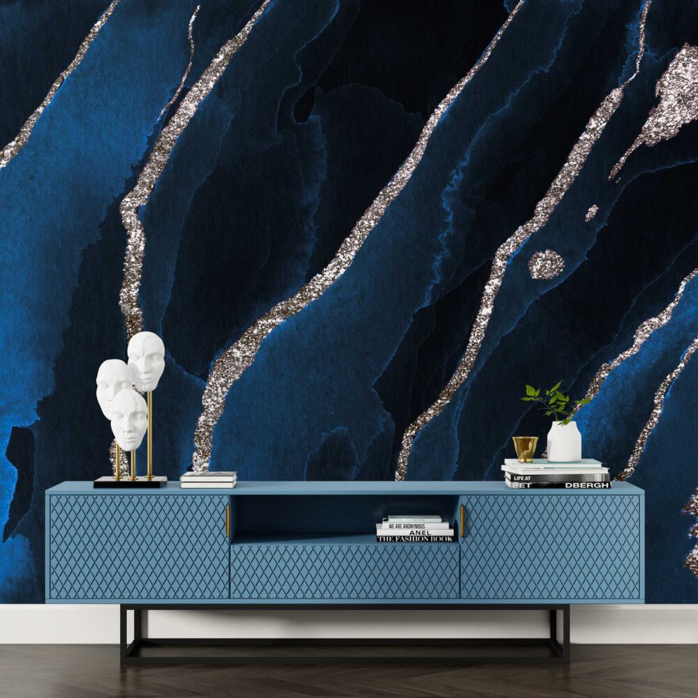 Mavi Tonlarda Gümüş Detaylı Mermer Duvar Kağıdı | Duvar Kağıdı Marketi üretimi, uygulanmasını isteyeceğiniz boyut ve konumuna uygun olarak talepleriniz doğrultusunda size özel imal edilir.