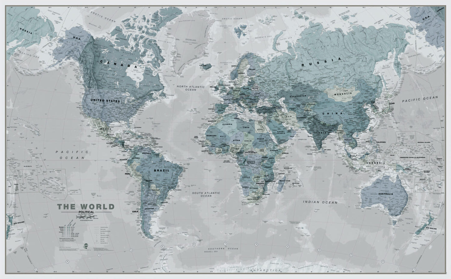 Mavi Tonlarda Ölçekli Dünya Haritası Desenli 3D Duvar Kağıdı Duvar Kağıdı Ürün Bilgisi