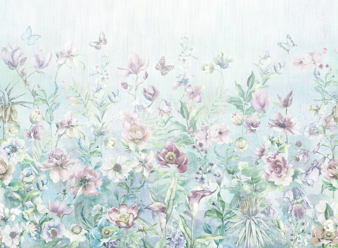 Mavi Tonlarda Soft Çiçekler Duvar Kağıdı