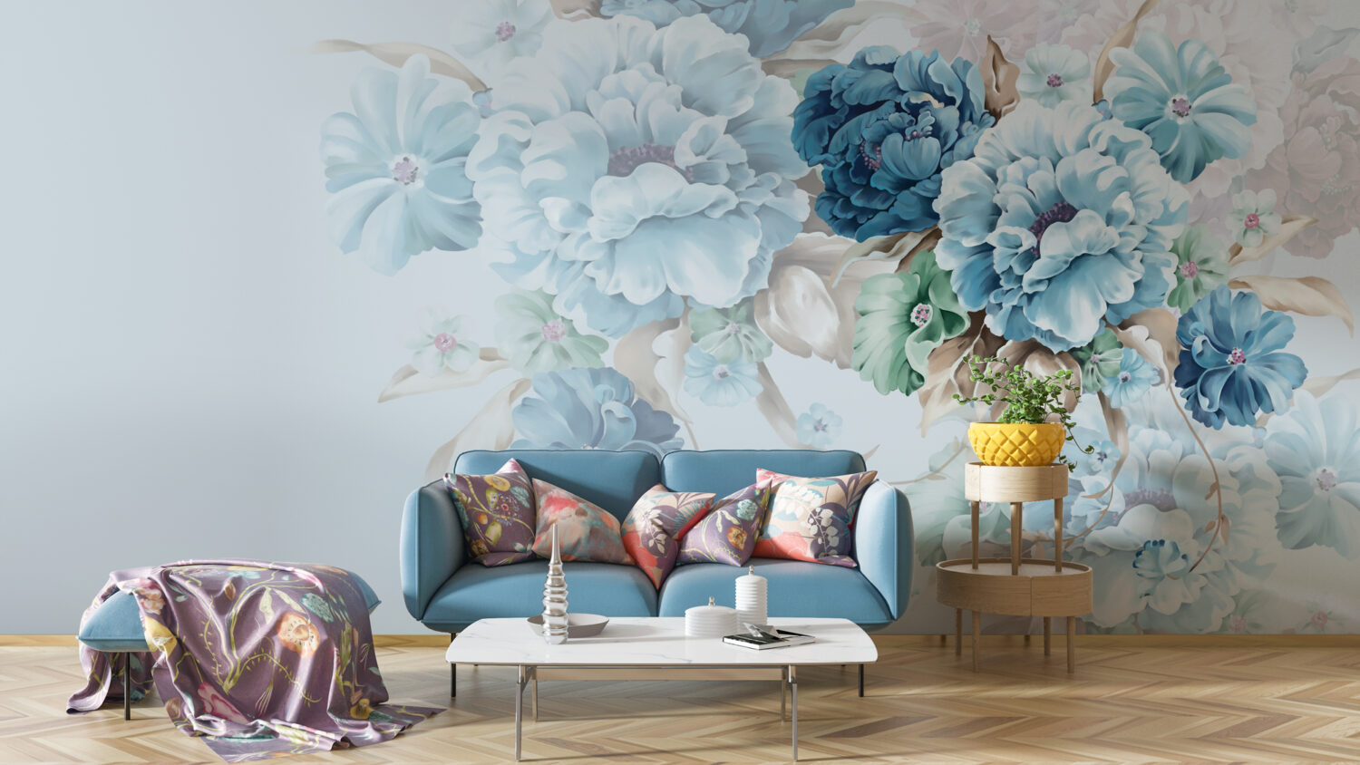 Mavi Tonlardaki Büyük Gül Desenli 3D Duvar Kağıdı üretimi, uygulanmasını isteyeceğiniz boyut ve konumuna uygun olarak talepleriniz doğrultusunda size özel imal edilir.