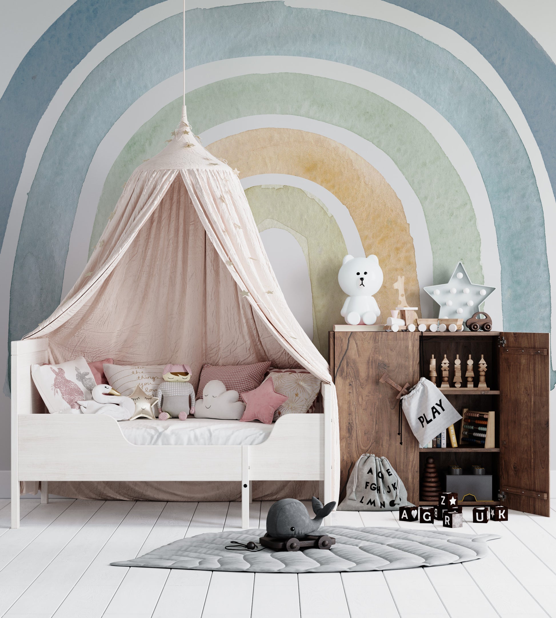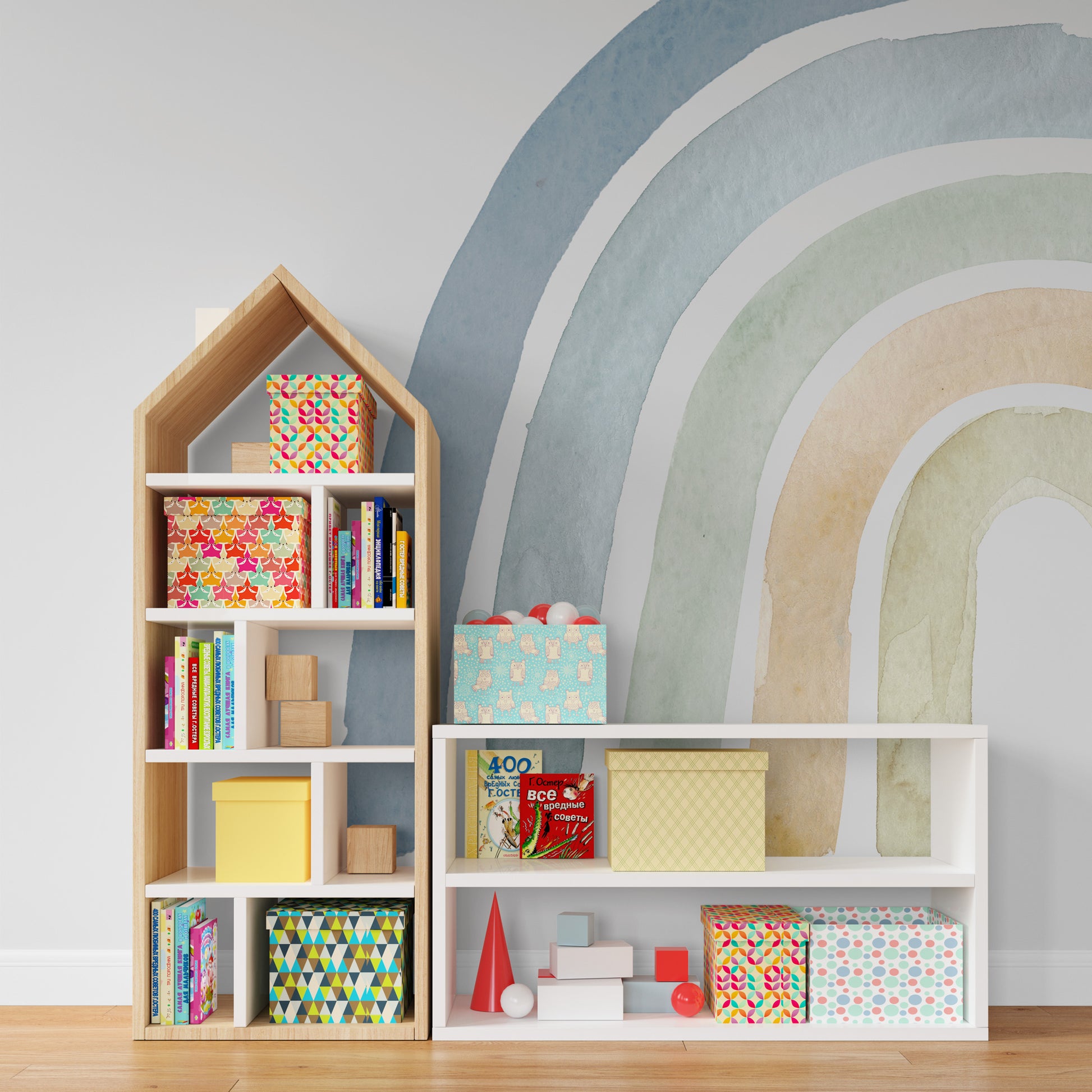 Mavi Tonlarında Gökkuşağı Duvar Kağıdı üretimi, uygulanmasını isteyeceğiniz boyut ve konumuna uygun olarak talepleriniz doğrultusunda size özel imal edilir.