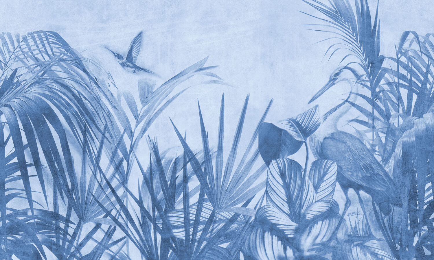 Mavi Tonunda Tropikal ve Kuşlu Duvar Kağıdı üretimi, uygulanmasını isteyeceğiniz boyut ve konumuna uygun olarak talepleriniz doğrultusunda size özel imal edilir.