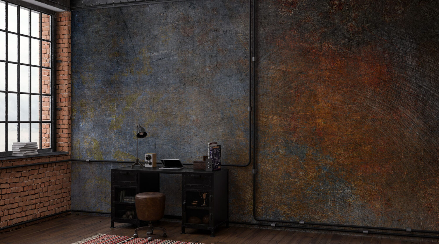 Mavi ve Bakır Tonlarda Brüt Beton Duvar Kağıdı Duvar Kağıdı Ürün Bilgisi