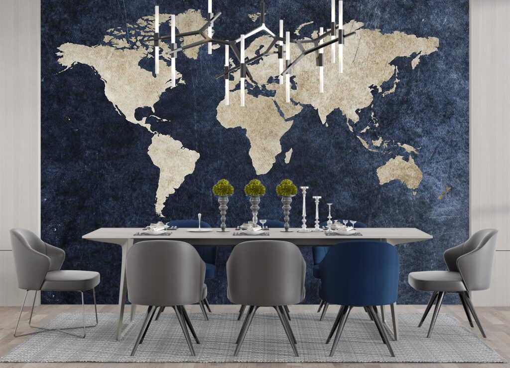 Mavi ve Beyaz Renkli Dünya Haritası 3D Duvar Kağıdı | Duvar Kağıdı Marketi üretimi, uygulanmasını isteyeceğiniz boyut ve konumuna uygun olarak talepleriniz doğrultusunda size özel imal edilir.