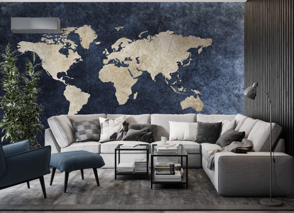Mavi ve Beyaz Renkli Dünya Haritası 3D Duvar Kağıdı | Duvar Kağıdı Marketi Duvar Kağıdı Ürün Bilgisi