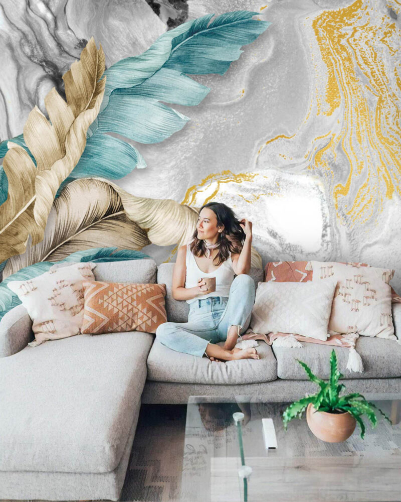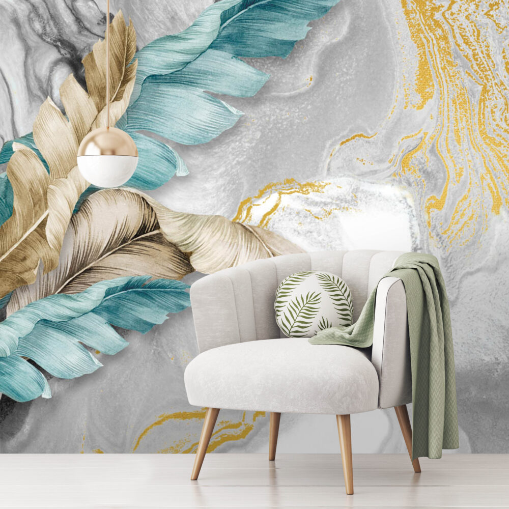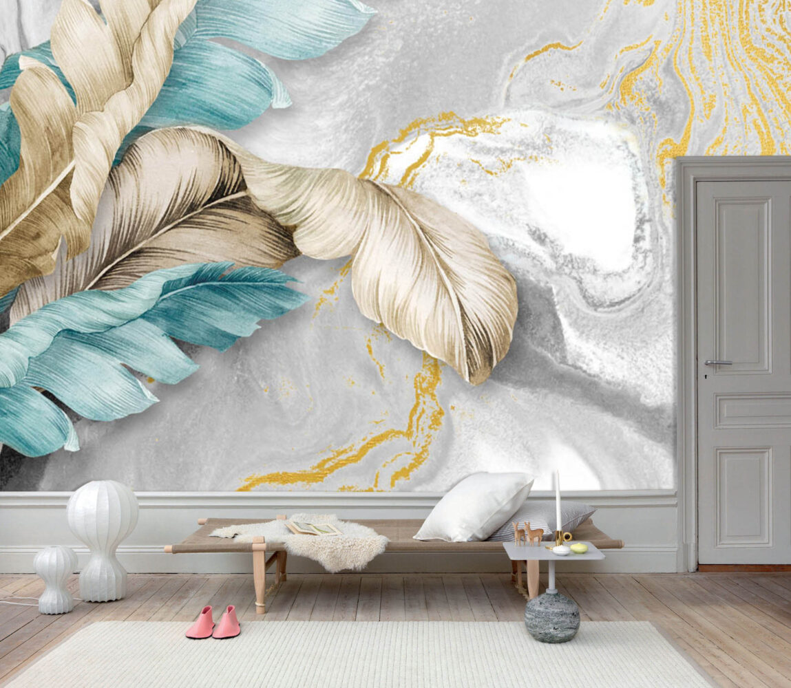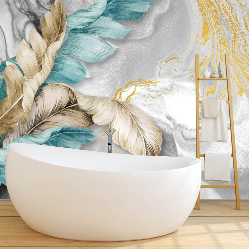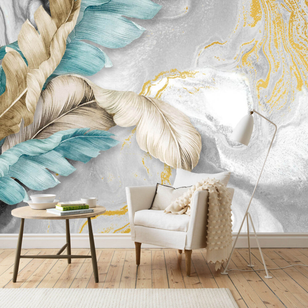 Mermer Zeminde Mavi ve Bej Tüyler Duvar Kağıdı Duvar Kağıdı Ürün Bilgisi