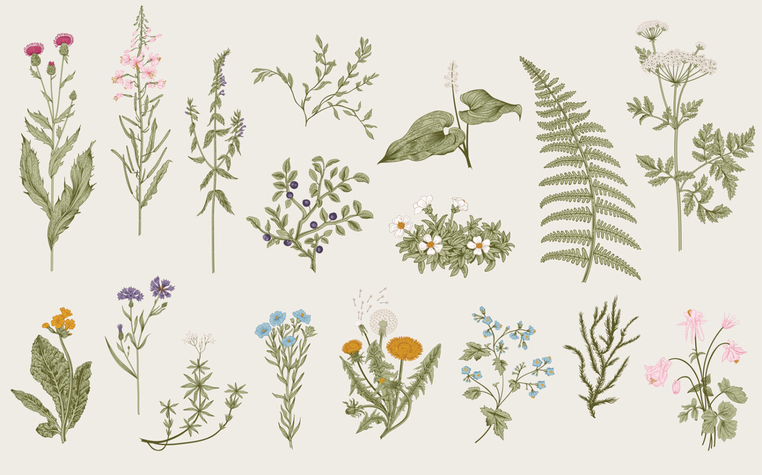Minimalist Çiçekler ve Eğrelti Otları Duvar Kağıdı