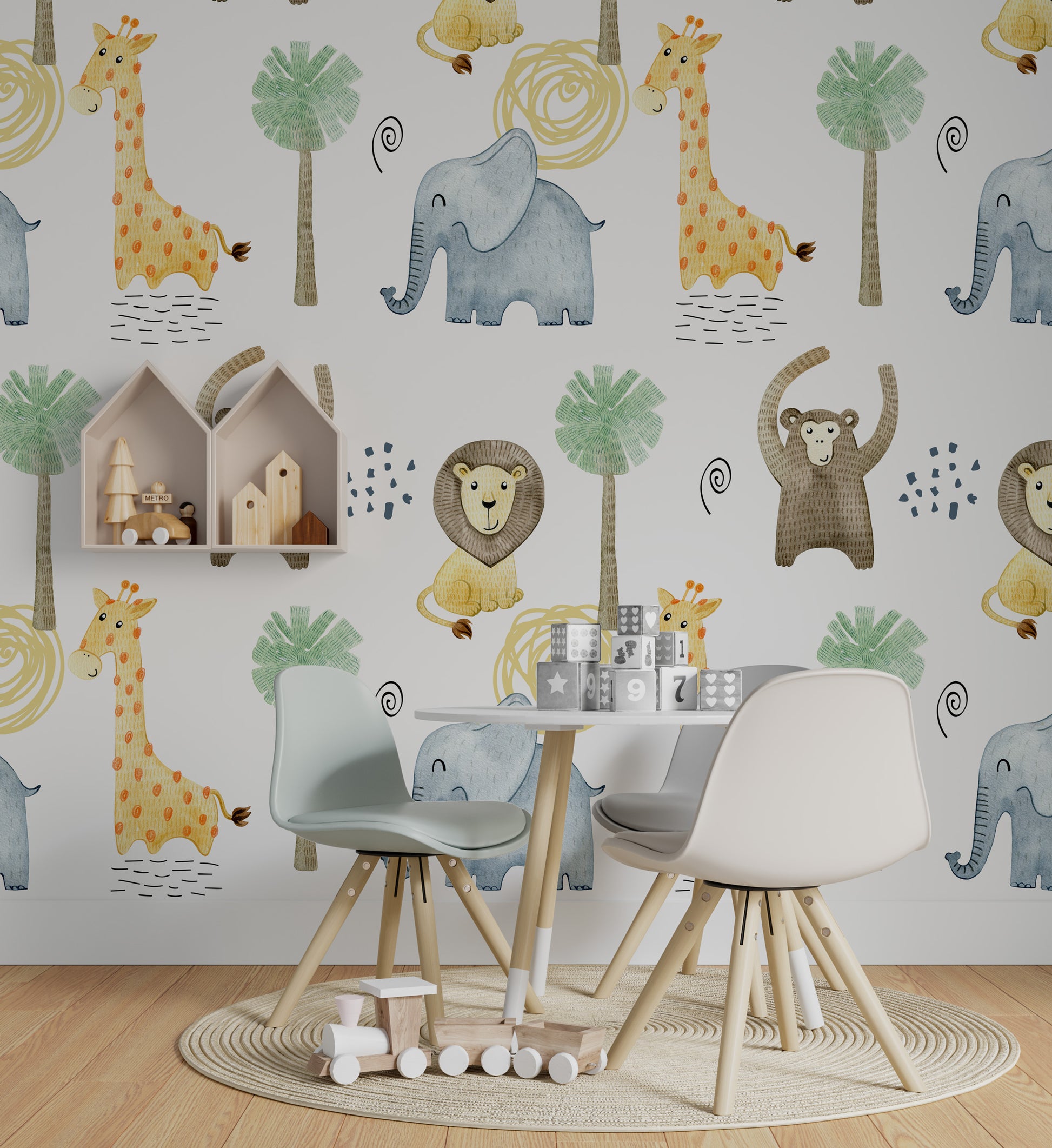 Minimalist Safari Hayvanları Duvar Kağıdı üretimi, uygulanmasını isteyeceğiniz boyut ve konumuna uygun olarak talepleriniz doğrultusunda size özel imal edilir.