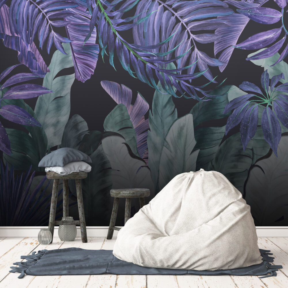 Mor Tonların'da Büyük Tropikal Yapraklar Duvar Kağıdı üretimi, uygulanmasını isteyeceğiniz boyut ve konumuna uygun olarak talepleriniz doğrultusunda size özel imal edilir.