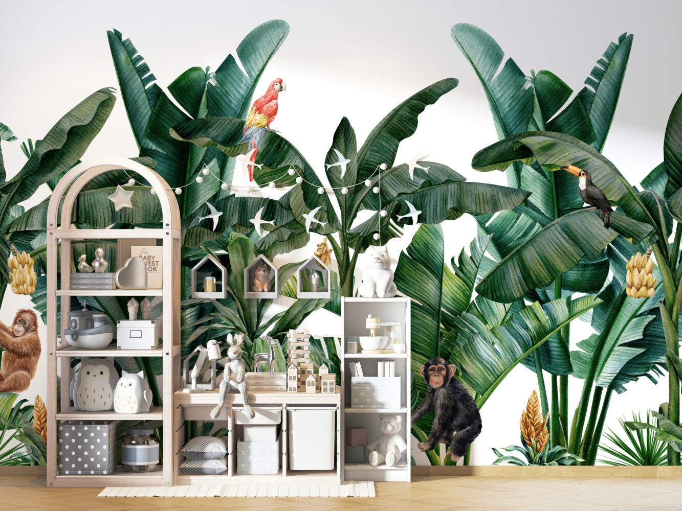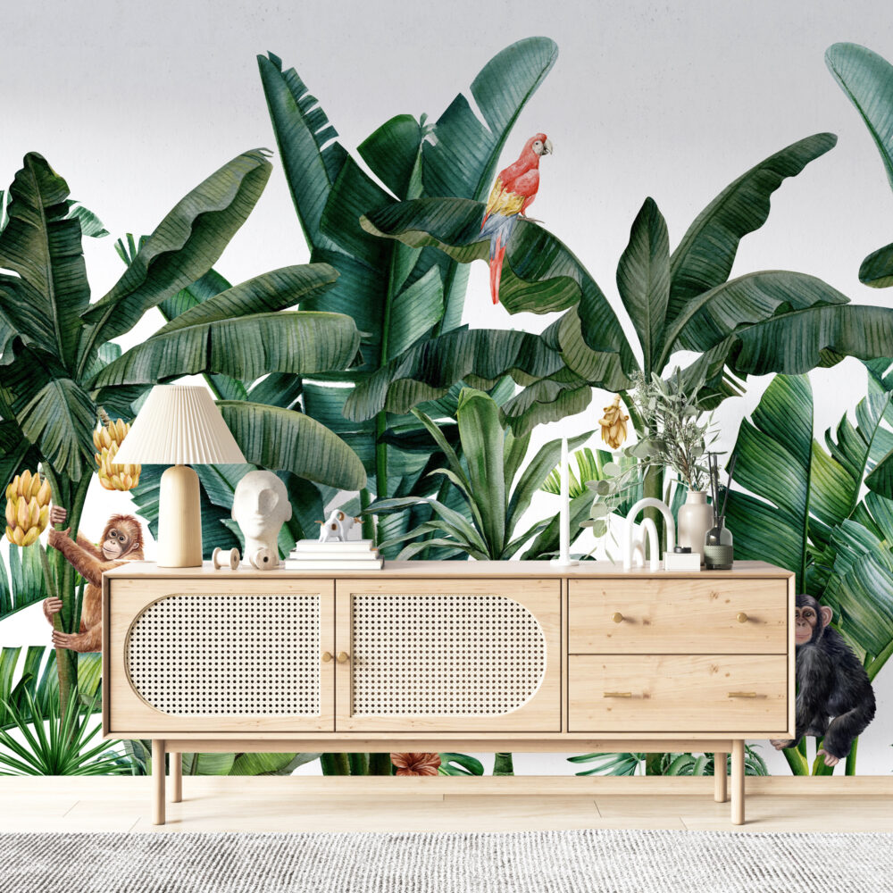 Muz Ağaçlarındaki Hayvanlar Tropikal Duvar Kağıdı Duvar Kağıdı Ürün Bilgisi