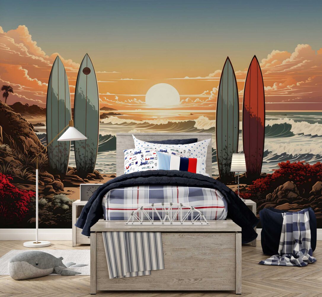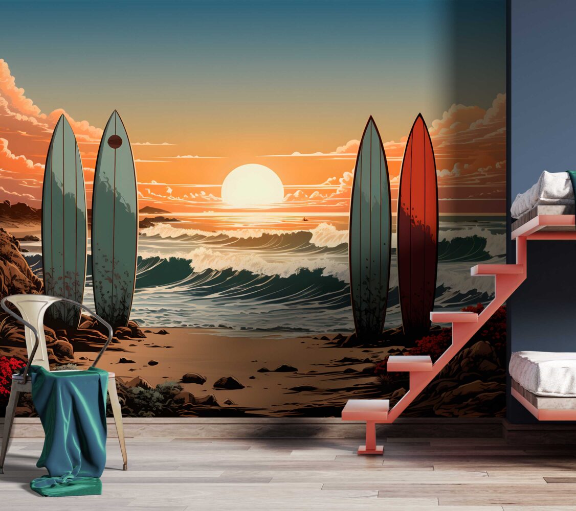 Okyanus da Sörf Tahtası Duvar Kağıdı üretimi, uygulanmasını isteyeceğiniz boyut ve konumuna uygun olarak talepleriniz doğrultusunda size özel imal edilir.