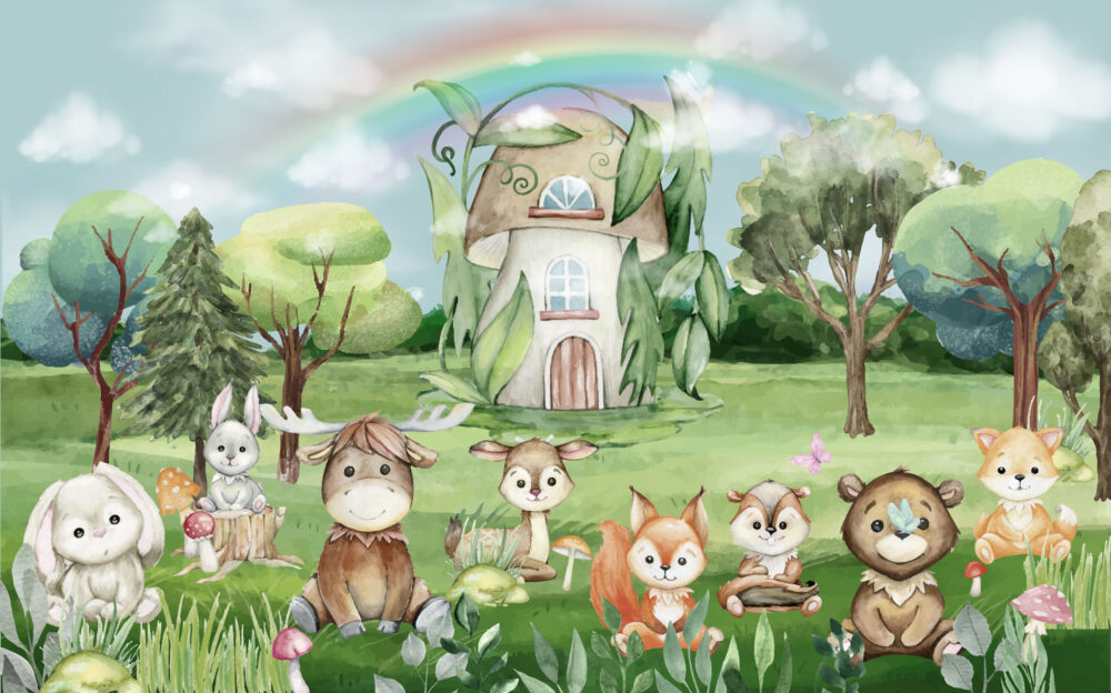 Orman Evindeki Hayvanlar Duvar Kağıdı üretimi, uygulanmasını isteyeceğiniz boyut ve konumuna uygun olarak talepleriniz doğrultusunda size özel imal edilir.
