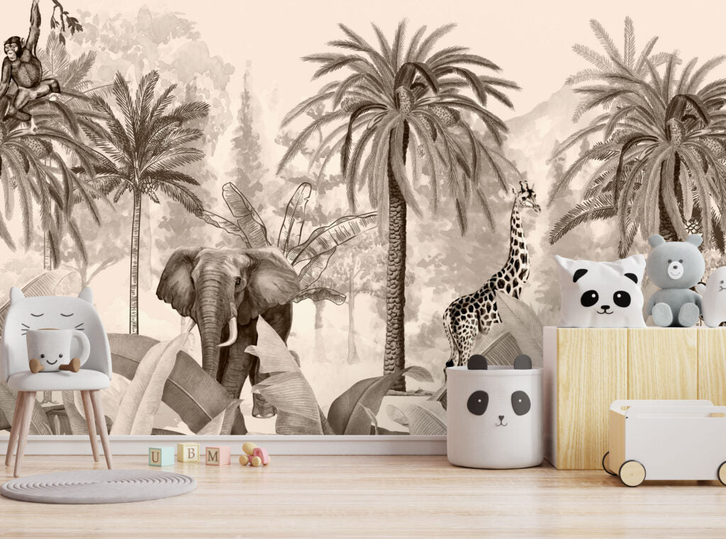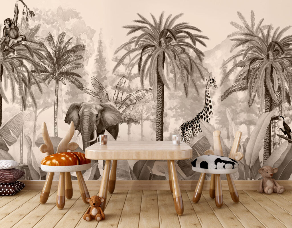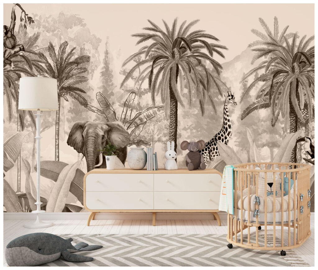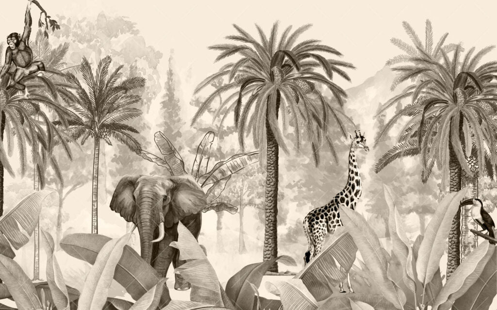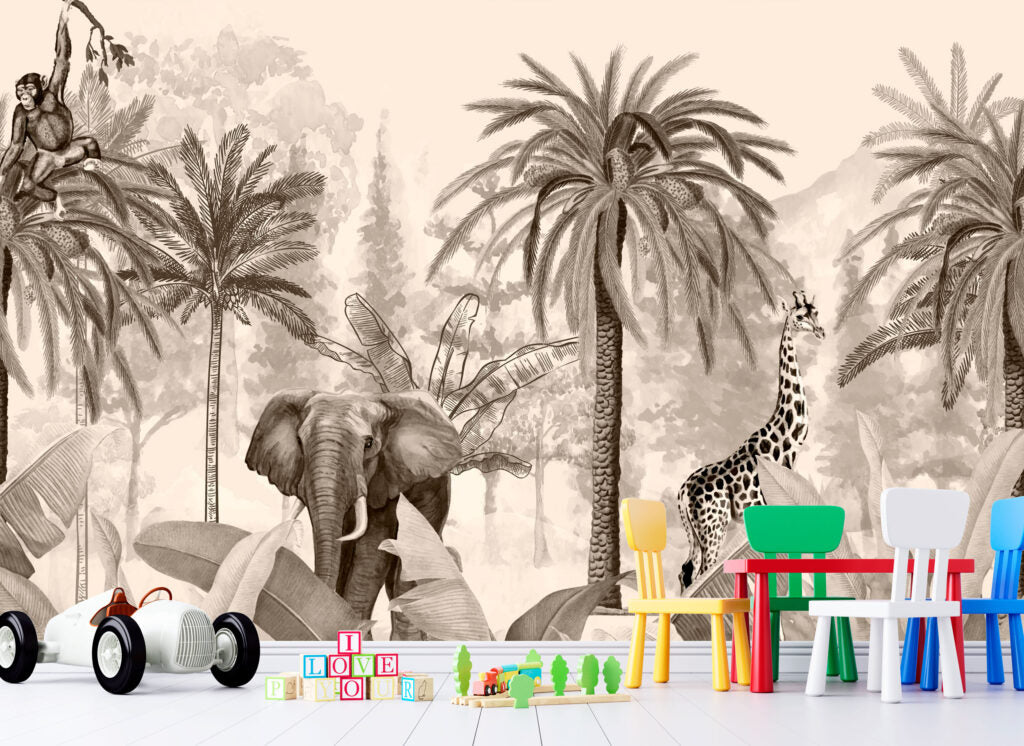 Ormanda Fil ve Zürafalı 3D Duvar Kağıdı | Duvar Kağıdı Marketi Duvar Kağıdı Ürün Bilgisi