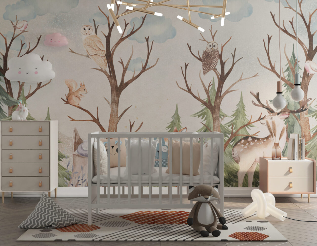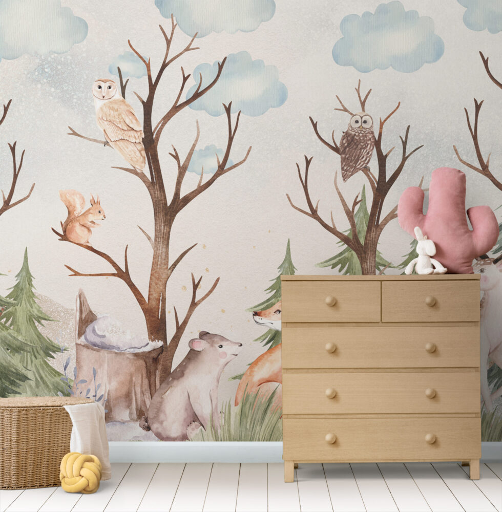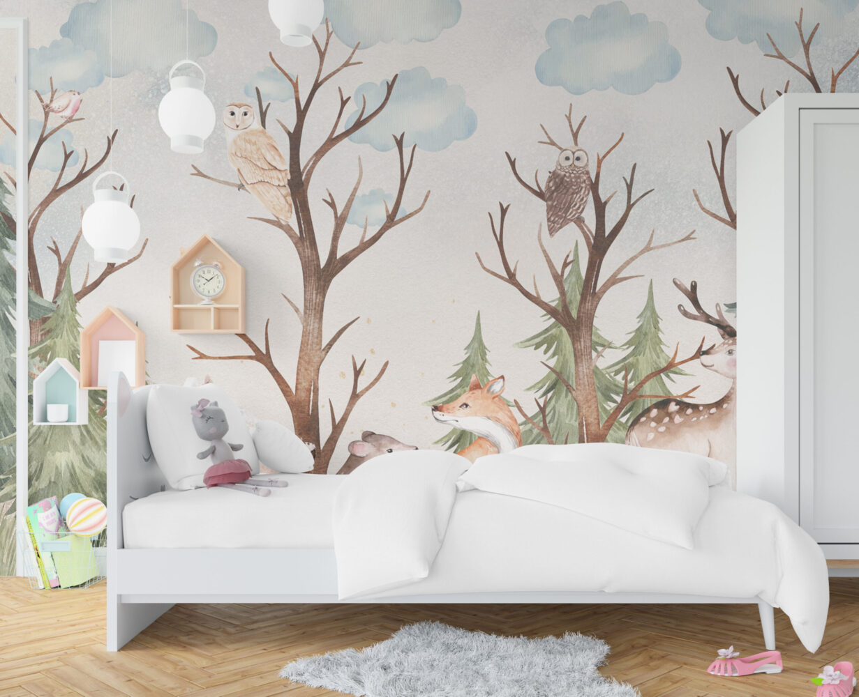 Ormanda Gezen Şirin Hayvanlar 3D Duvar Kağıdı üretimi, uygulanmasını isteyeceğiniz boyut ve konumuna uygun olarak talepleriniz doğrultusunda size özel imal edilir.