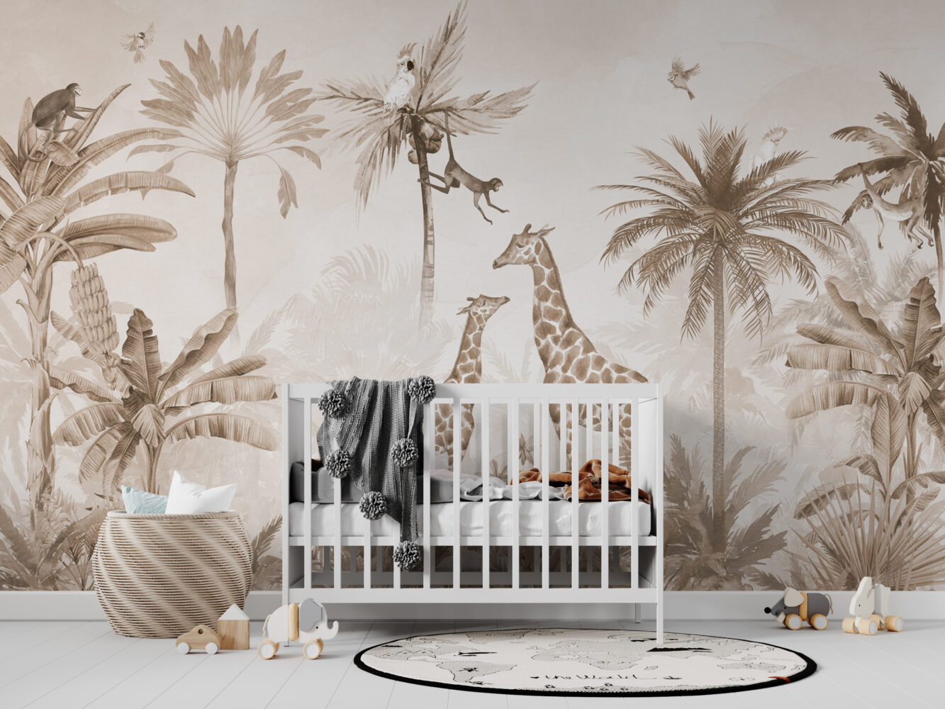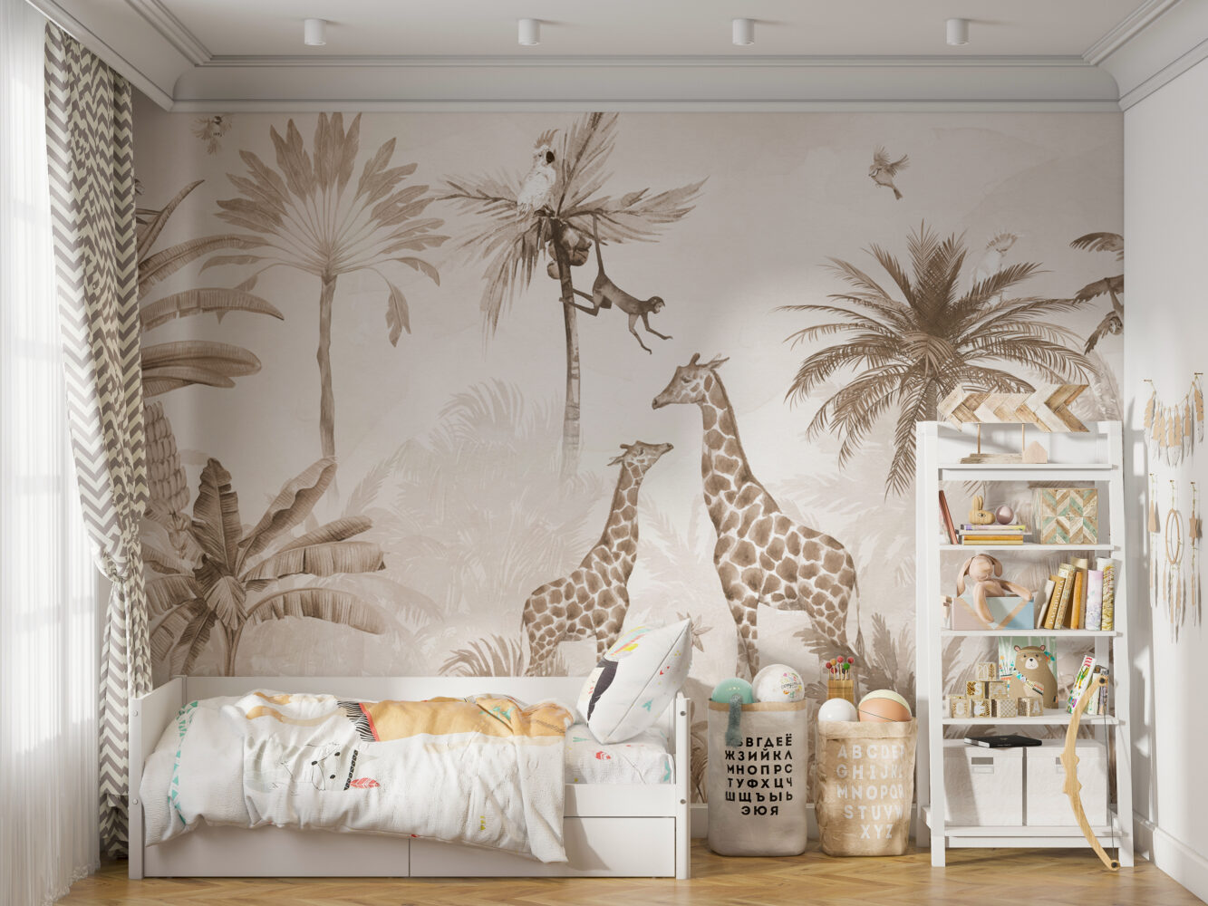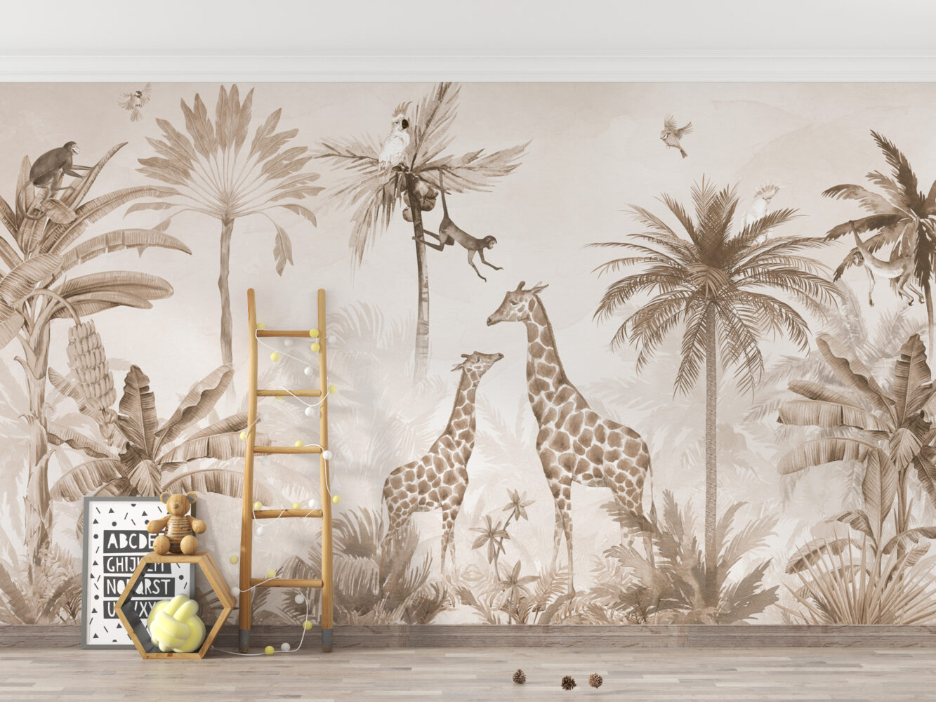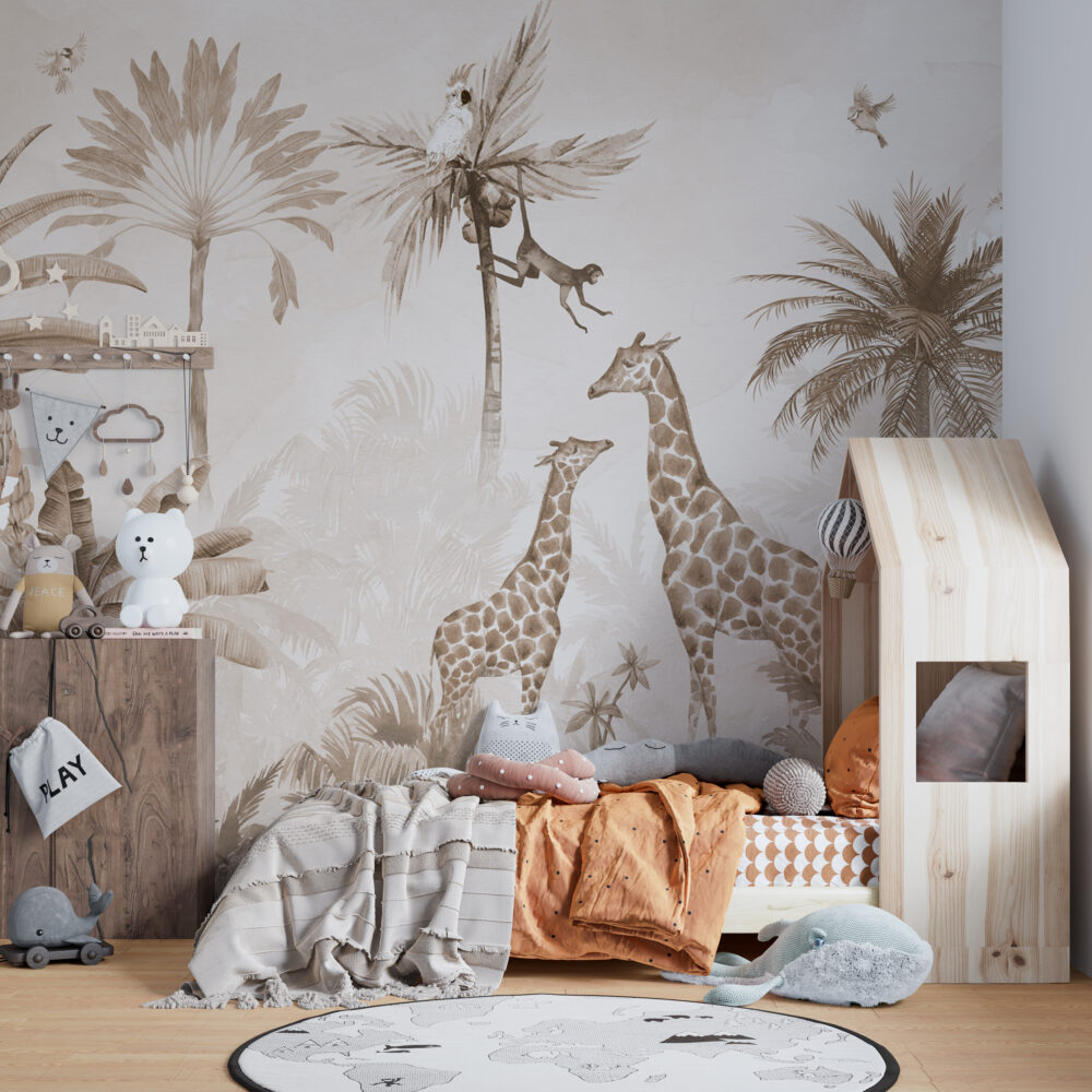 Ormanda ki Hayvanlar Ve Tropikal Ağaçlar Duvar Kağıdı üretimi, uygulanmasını isteyeceğiniz boyut ve konumuna uygun olarak talepleriniz doğrultusunda size özel imal edilir.