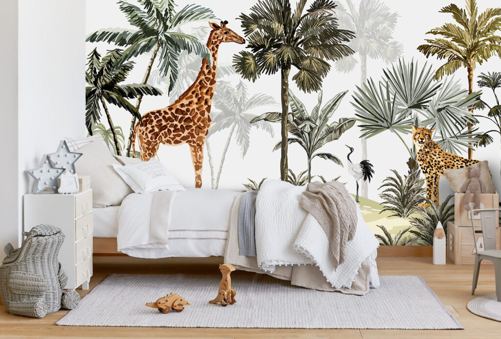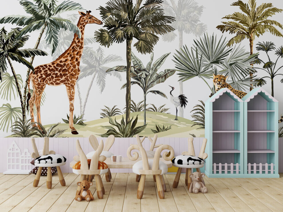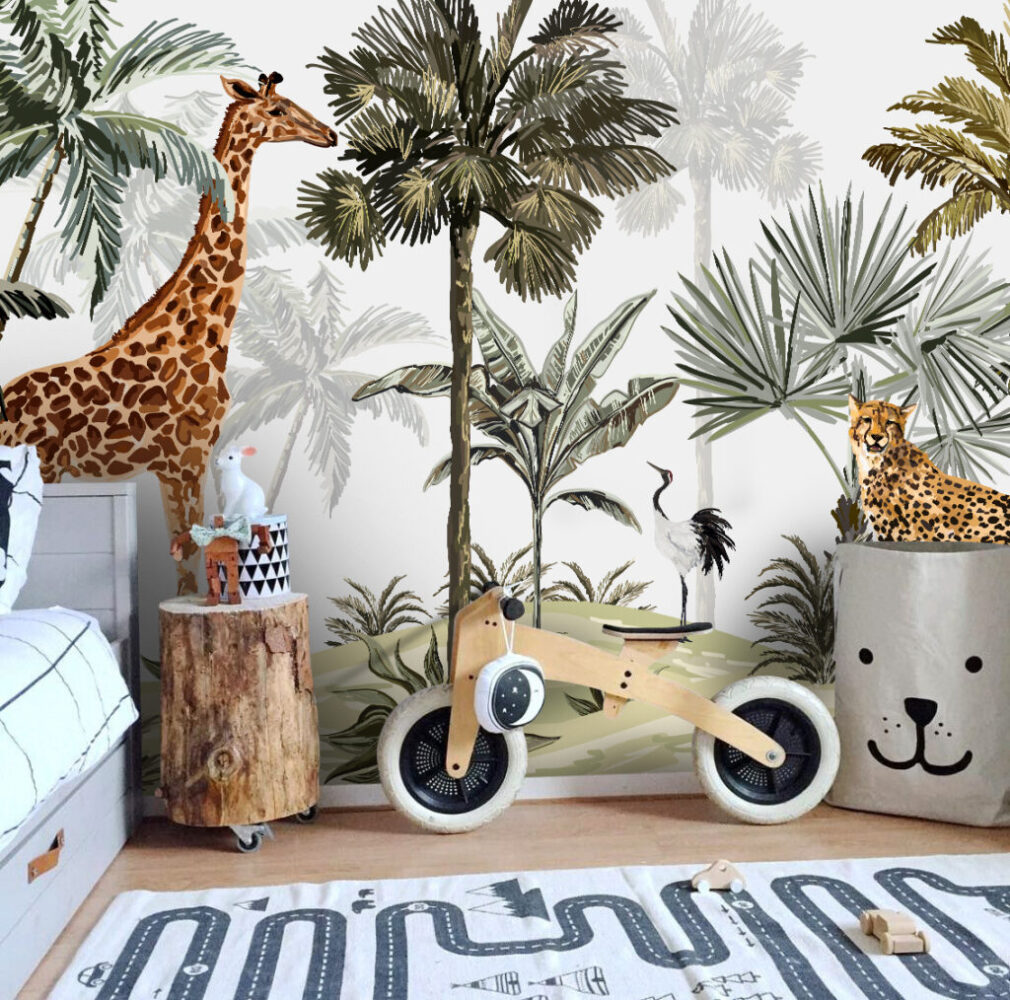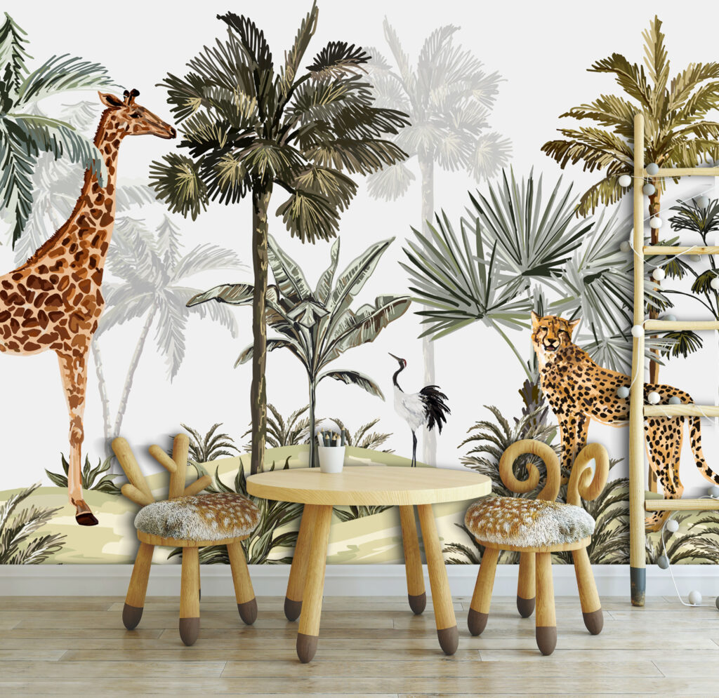 Ormanda Zürafa ve Kaplan Desenli 3D Duvar Kağıdı üretimi, uygulanmasını isteyeceğiniz boyut ve konumuna uygun olarak talepleriniz doğrultusunda size özel imal edilir.