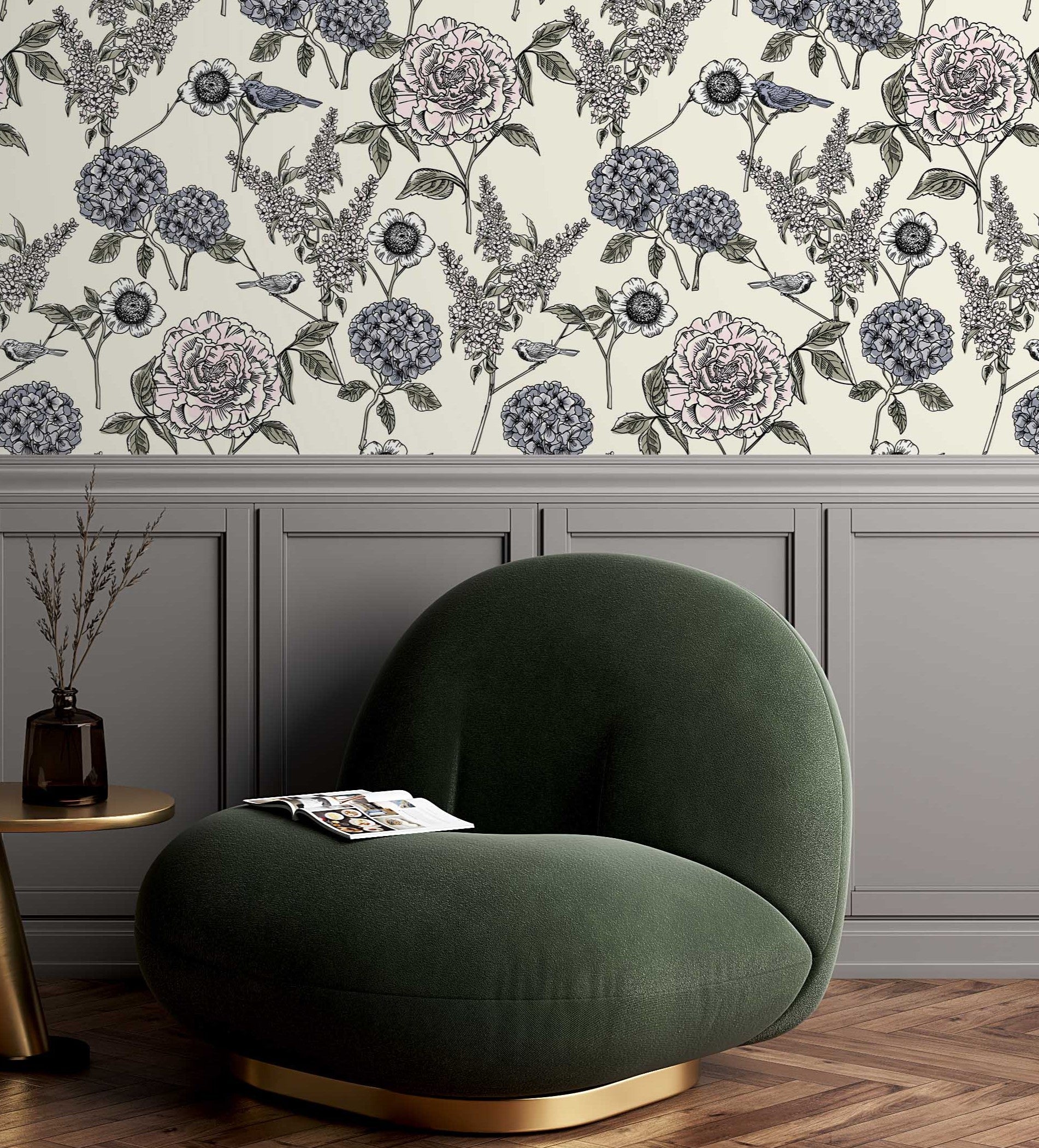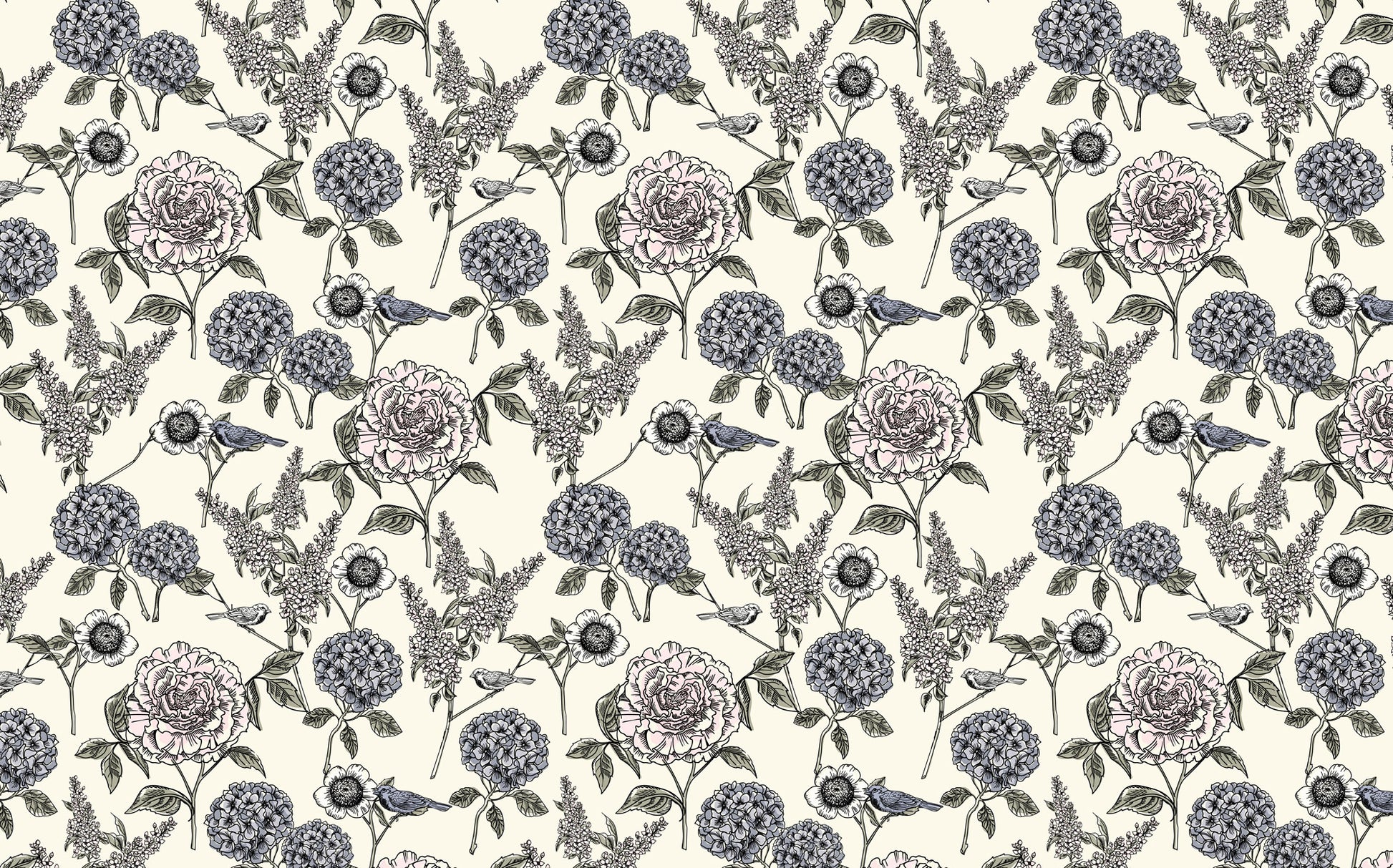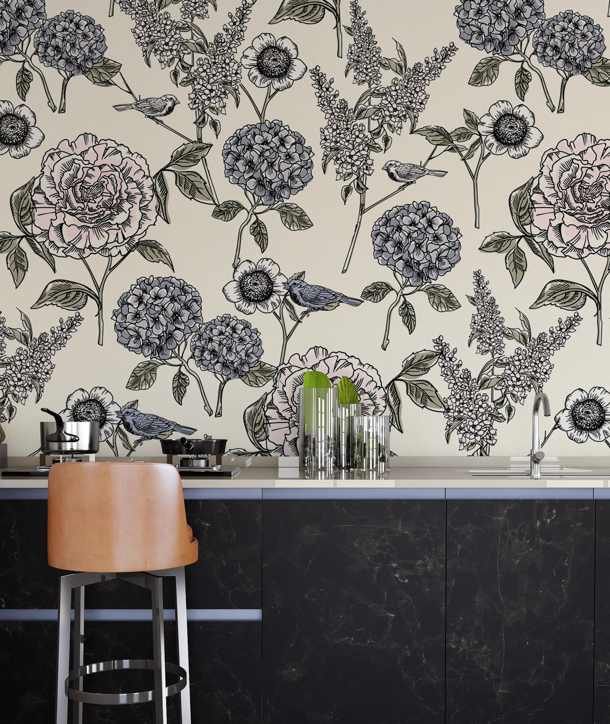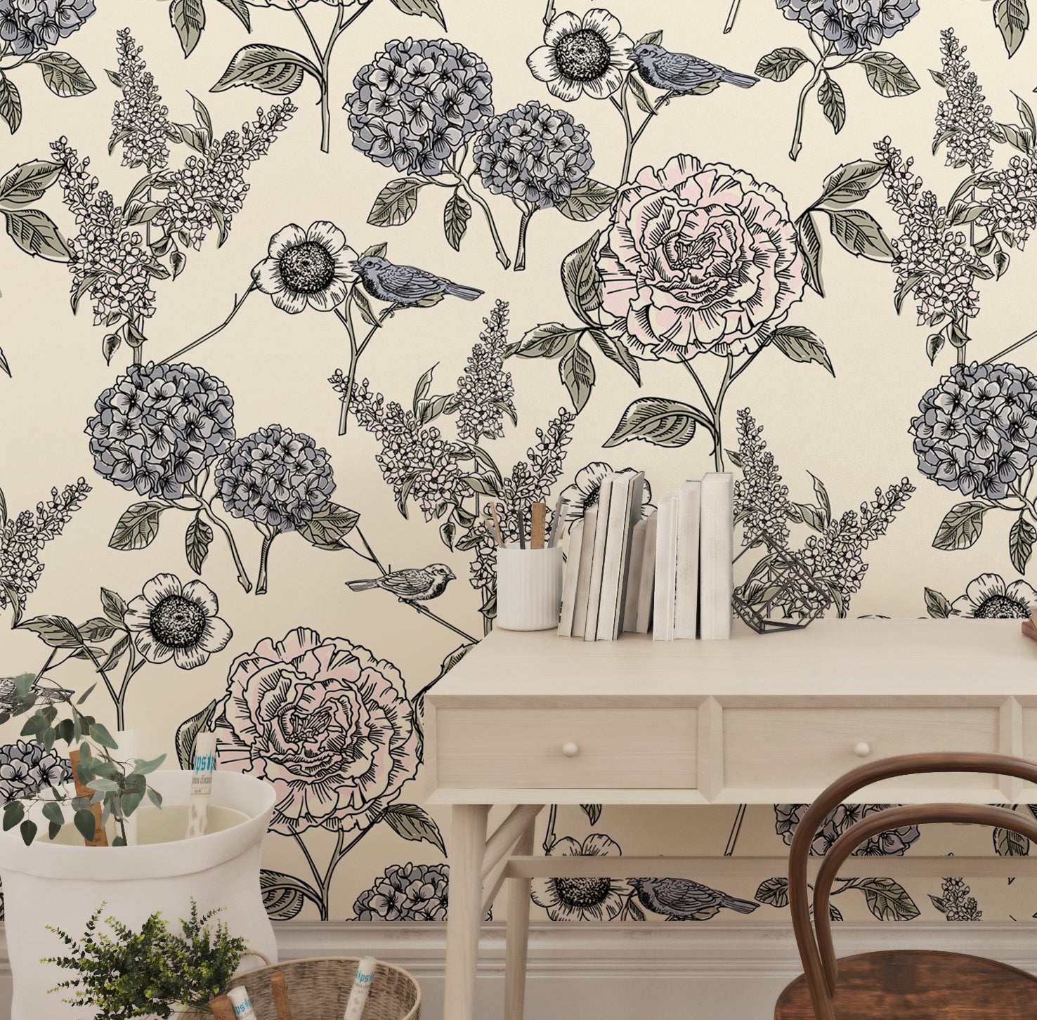 Ortanca Çiçekleri ve Kuşlar Duvar Kağıdı Duvar Kağıdı Ürün Bilgisi