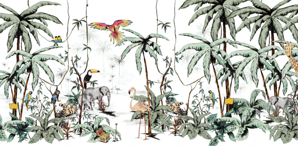 Palmiye Ağacı Altında Hayvan Desenli 3D Duvar Kağıdı Duvar Kağıdı Ürün Bilgisi