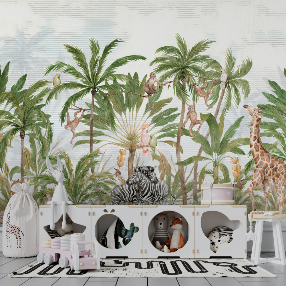 Palmiye Ağaçları Ve Safari Hayvanları Duvar Kağıdı üretimi, uygulanmasını isteyeceğiniz boyut ve konumuna uygun olarak talepleriniz doğrultusunda size özel imal edilir.