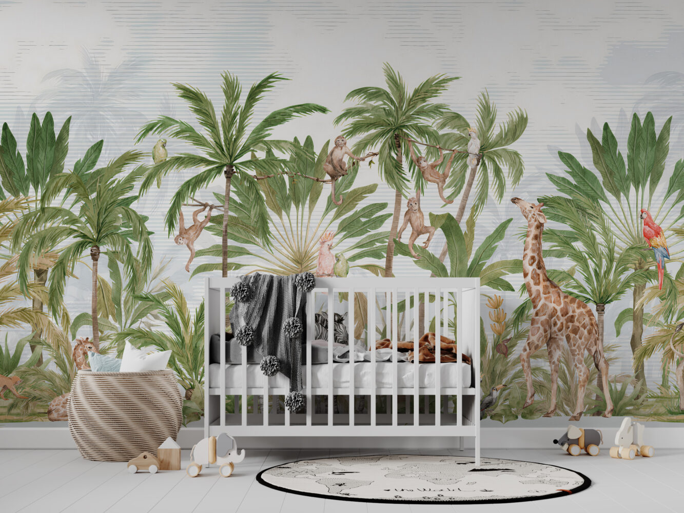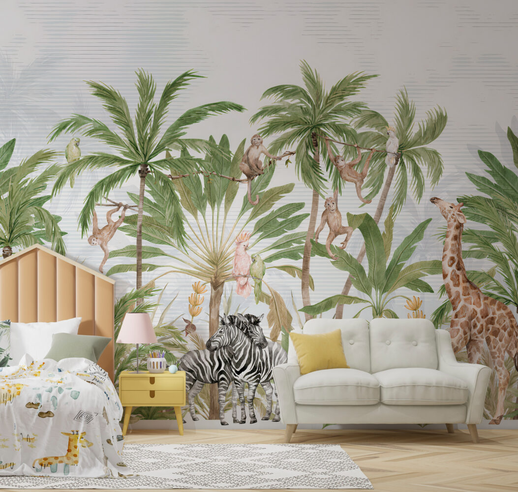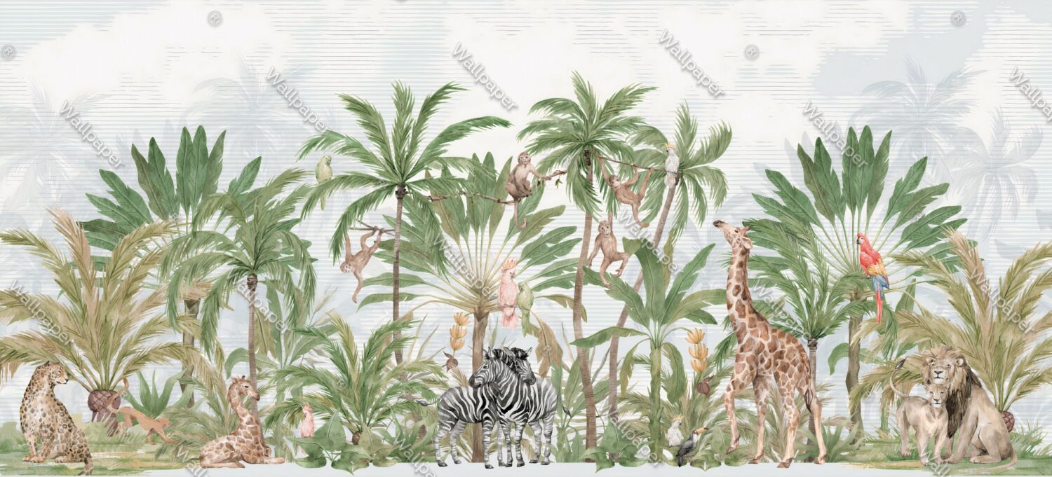 Palmiye Ağaçları Ve Safari Hayvanları Duvar Kağıdı Duvar Kağıdı Ürün Bilgisi