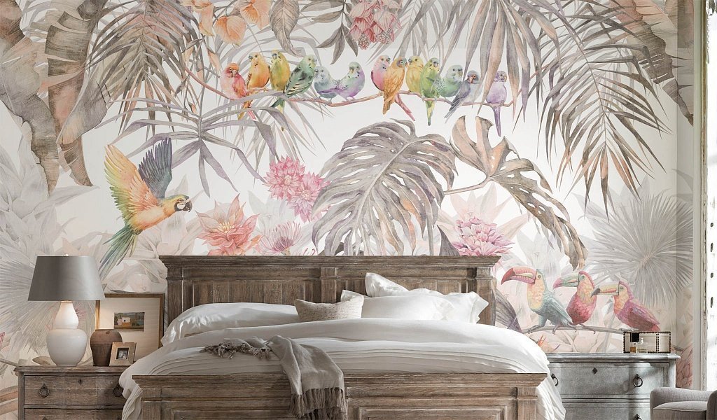 Papağanlar ve Muhabbet Kuşları Tropikal Duvar Kağıdı üretimi, uygulanmasını isteyeceğiniz boyut ve konumuna uygun olarak talepleriniz doğrultusunda size özel imal edilir.