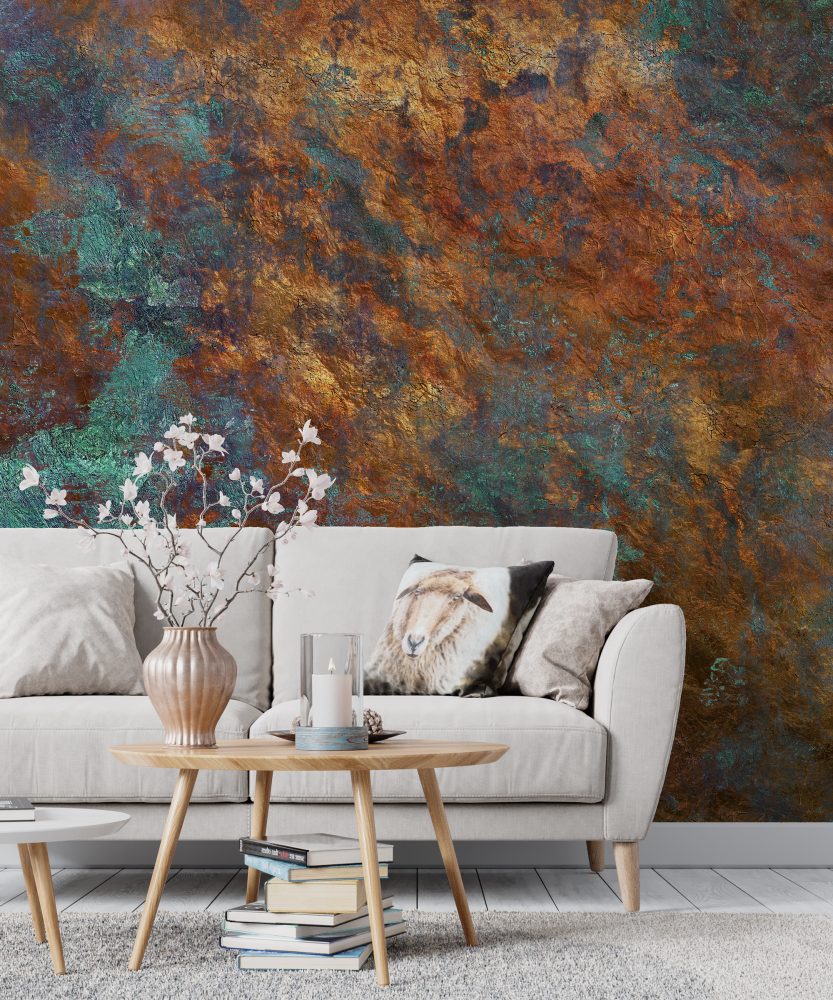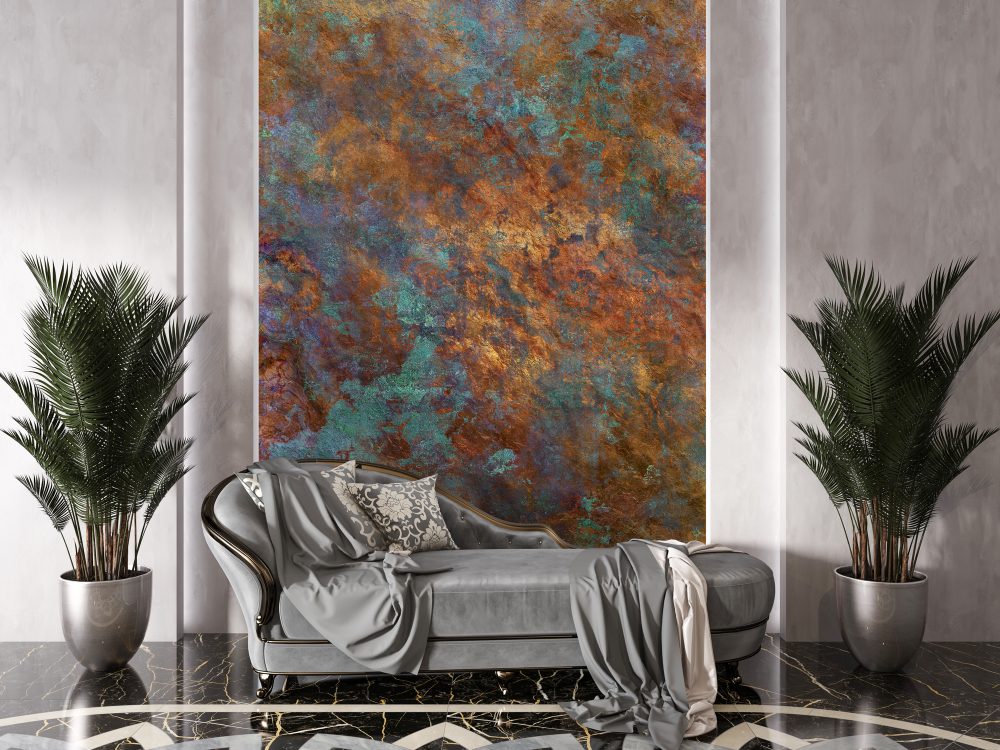 Paslı Duvar Dokusu Görünümlü Yeşil Tonda Duvar Kağıdı üretimi, uygulanmasını isteyeceğiniz boyut ve konumuna uygun olarak talepleriniz doğrultusunda size özel imal edilir.