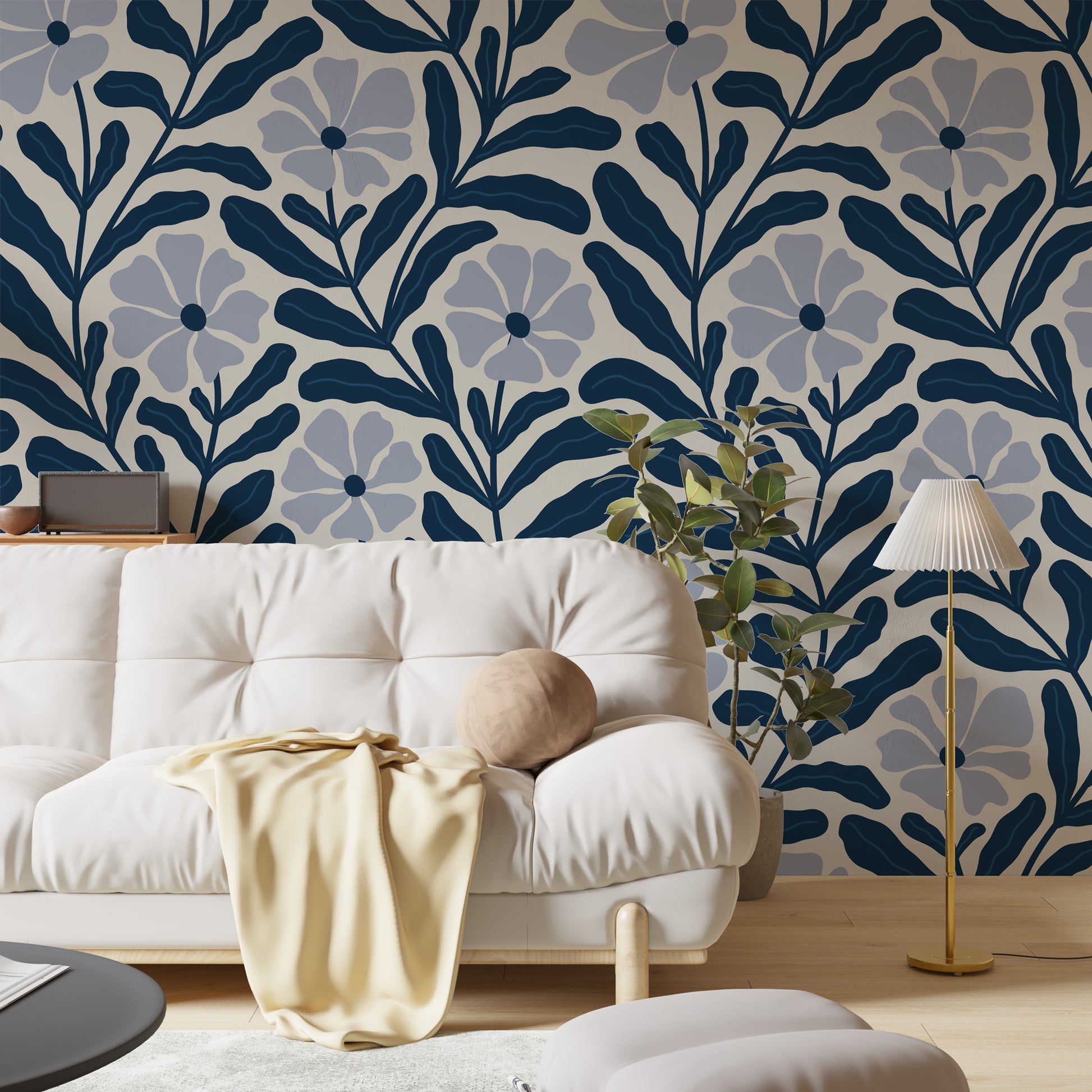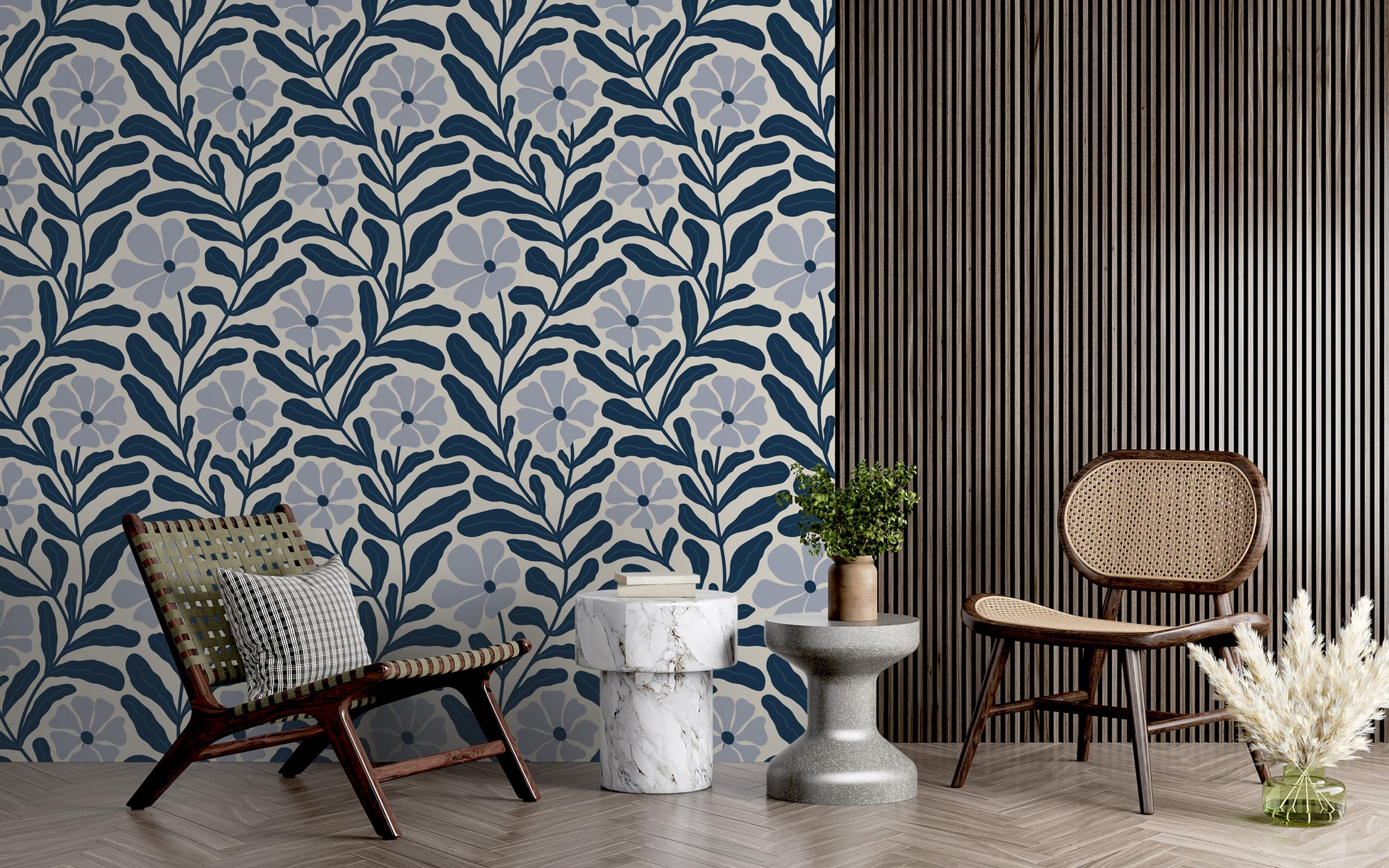 Pastel Mavi Minimal Çicekler Duvar Kağıdı Duvar Kağıdı Ürün Bilgisi