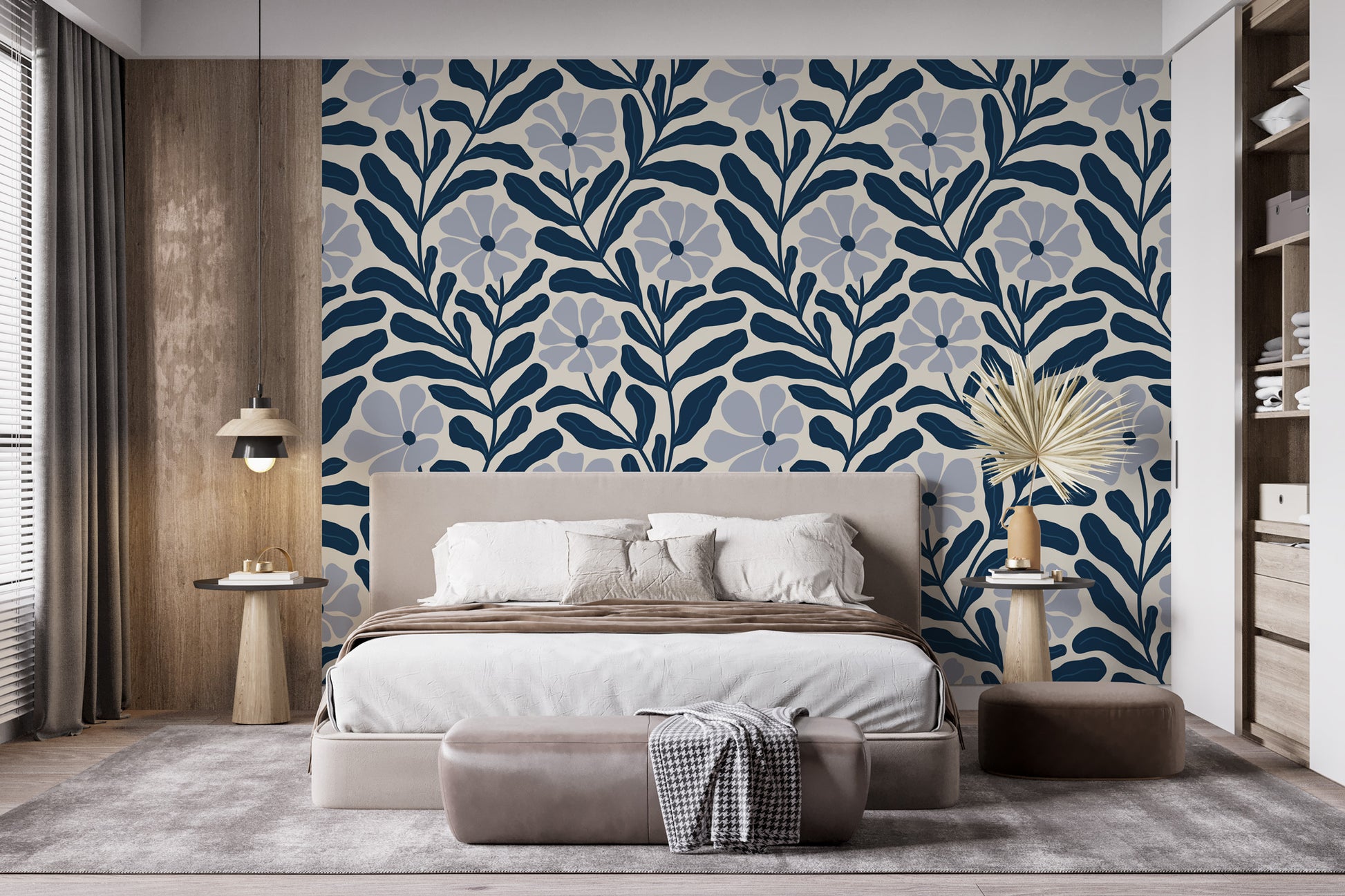 Pastel Mavi Minimal Çicekler Duvar Kağıdı