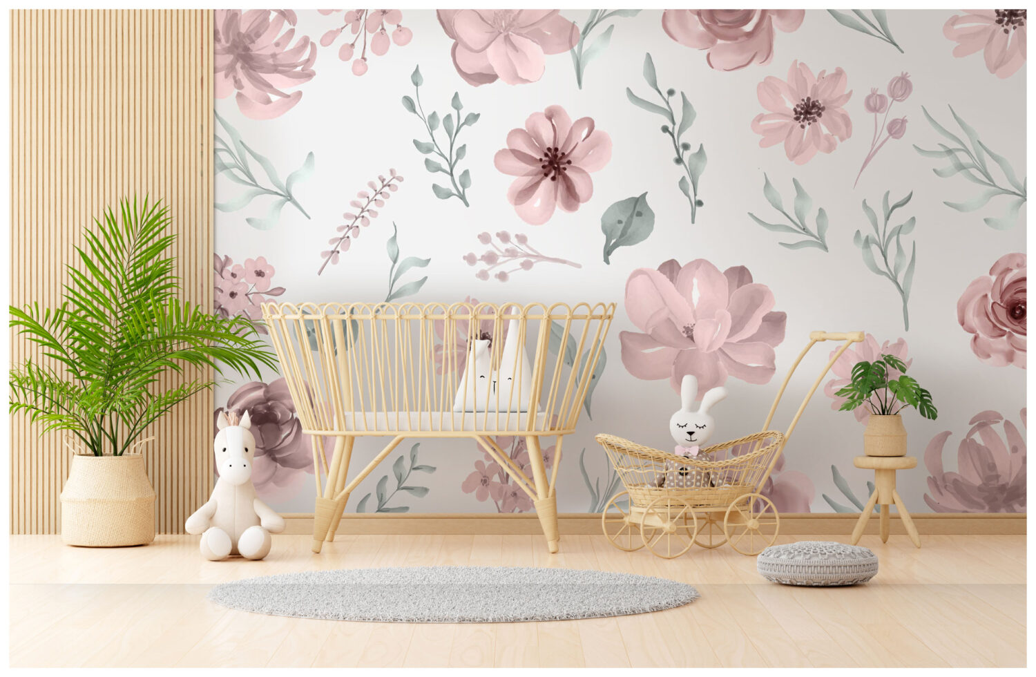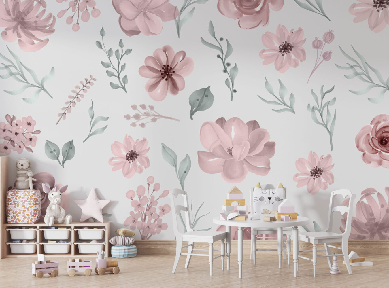 Pembe Tonlarda Çiçekler ve Yapraklar Duvar kağıdı Duvar Kağıdı Ürün Bilgisi