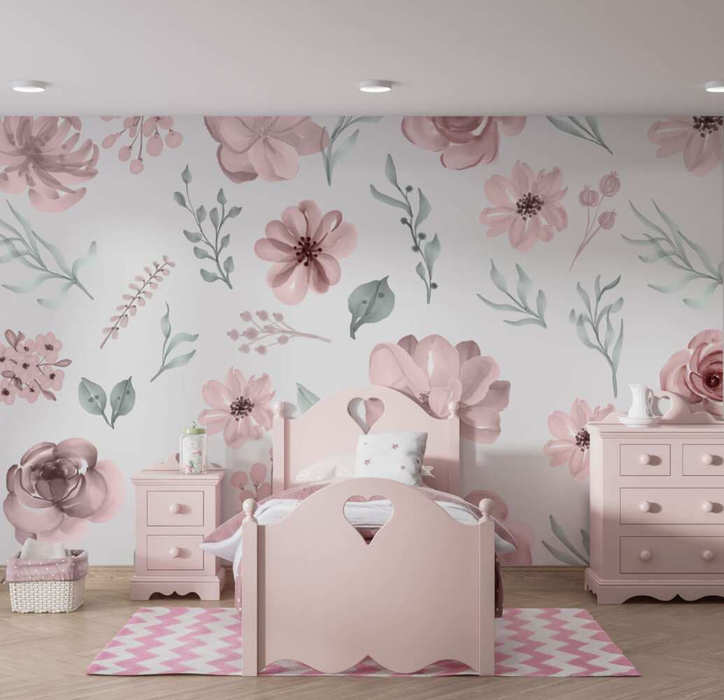 Pembe Tonlarda Çiçekler ve Yapraklar Duvar kağıdı üretimi, uygulanmasını isteyeceğiniz boyut ve konumuna uygun olarak talepleriniz doğrultusunda size özel imal edilir.